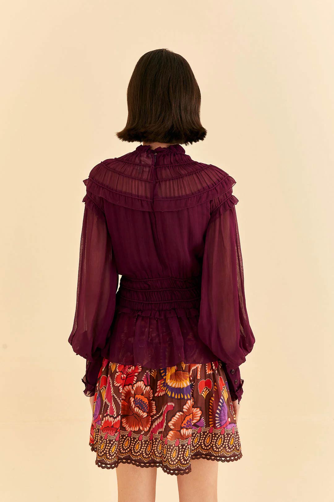 FARM RIO BURGANDY RUFFLE HIGH NECK BLOUSE