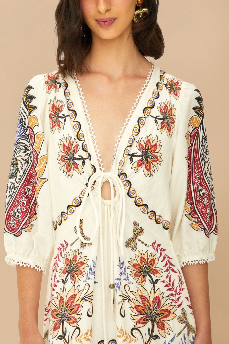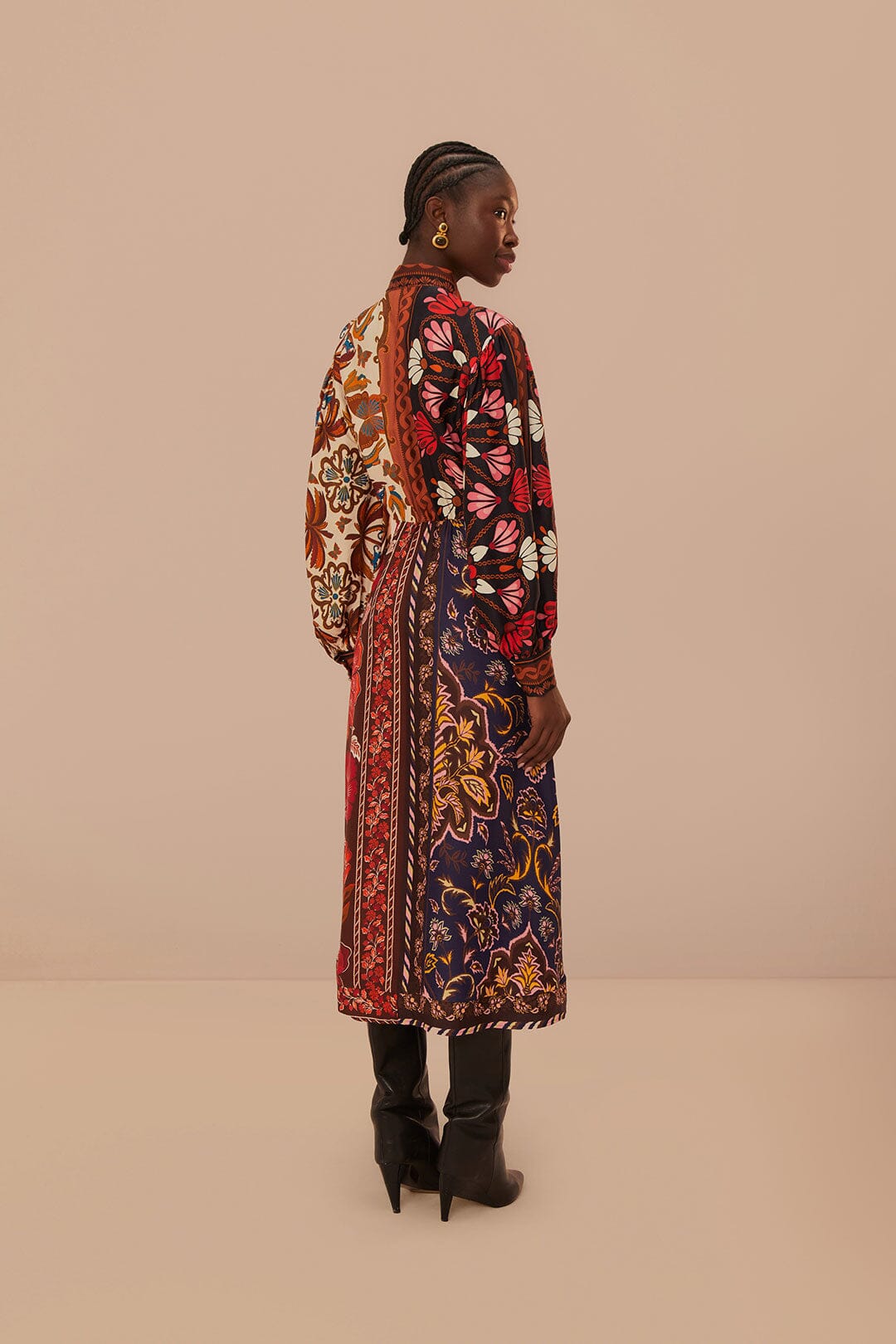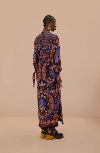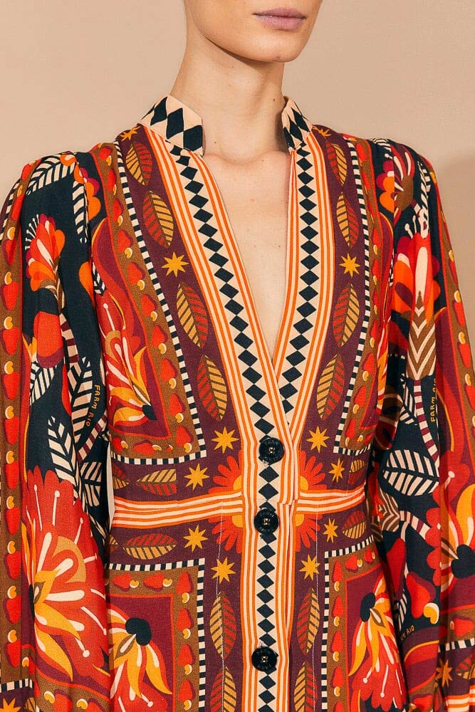 FARM RIO MIRANDA MIX ECO VISCOSE MIDI DRESS