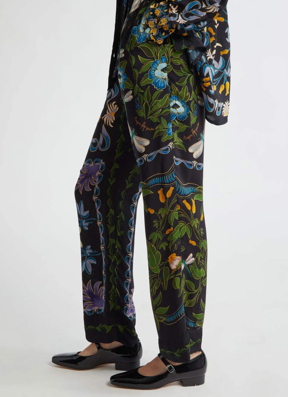 FARM RIO WINTER GARDEN BLACK PAJAMA SHIRT
