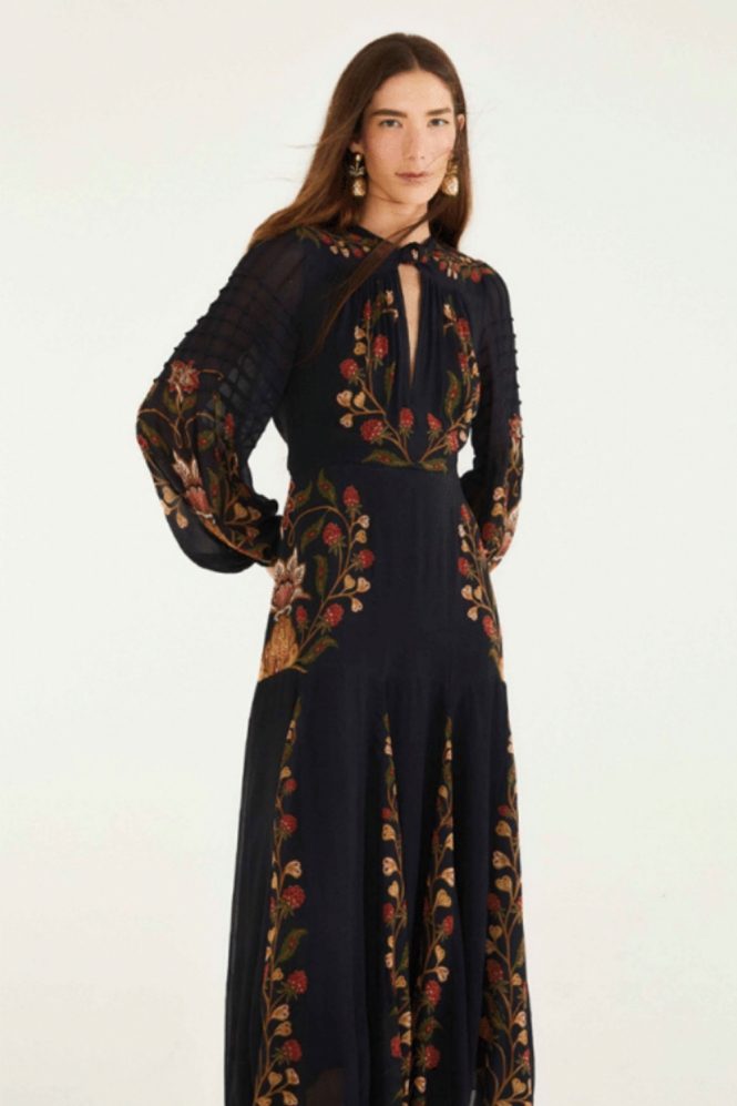 FARM RIO HEART FOREST L/S MIDI DRESS – BLACK