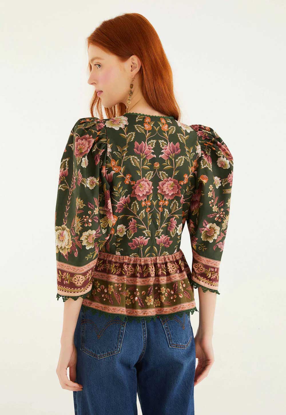FARM RIO BLOSSOM TAPESTRY BEE SMOCKED BLOUSE BLACK