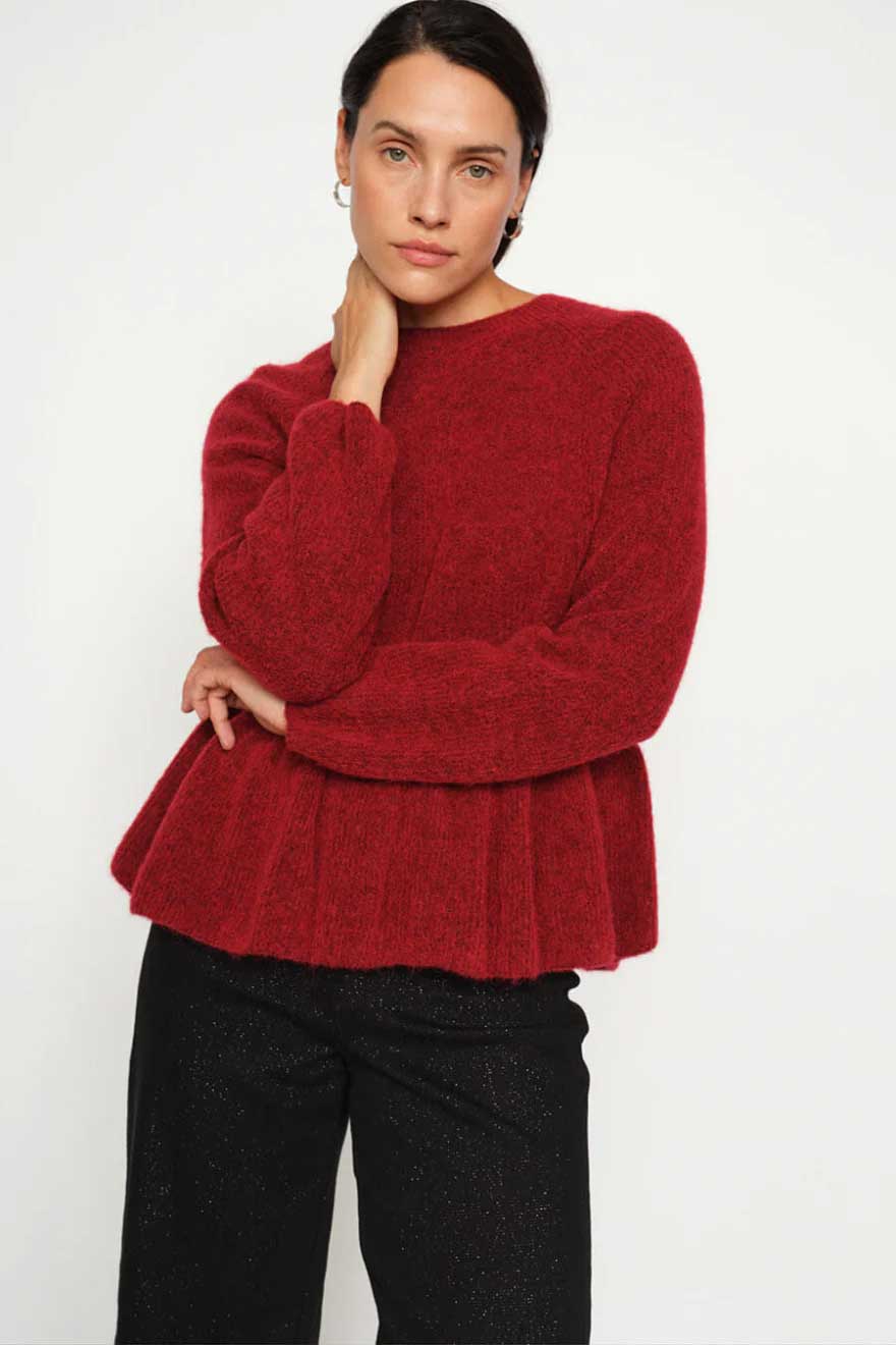 • MOS MOSH THORA O-NECK FRILL KNIT RHYTHMIC RED