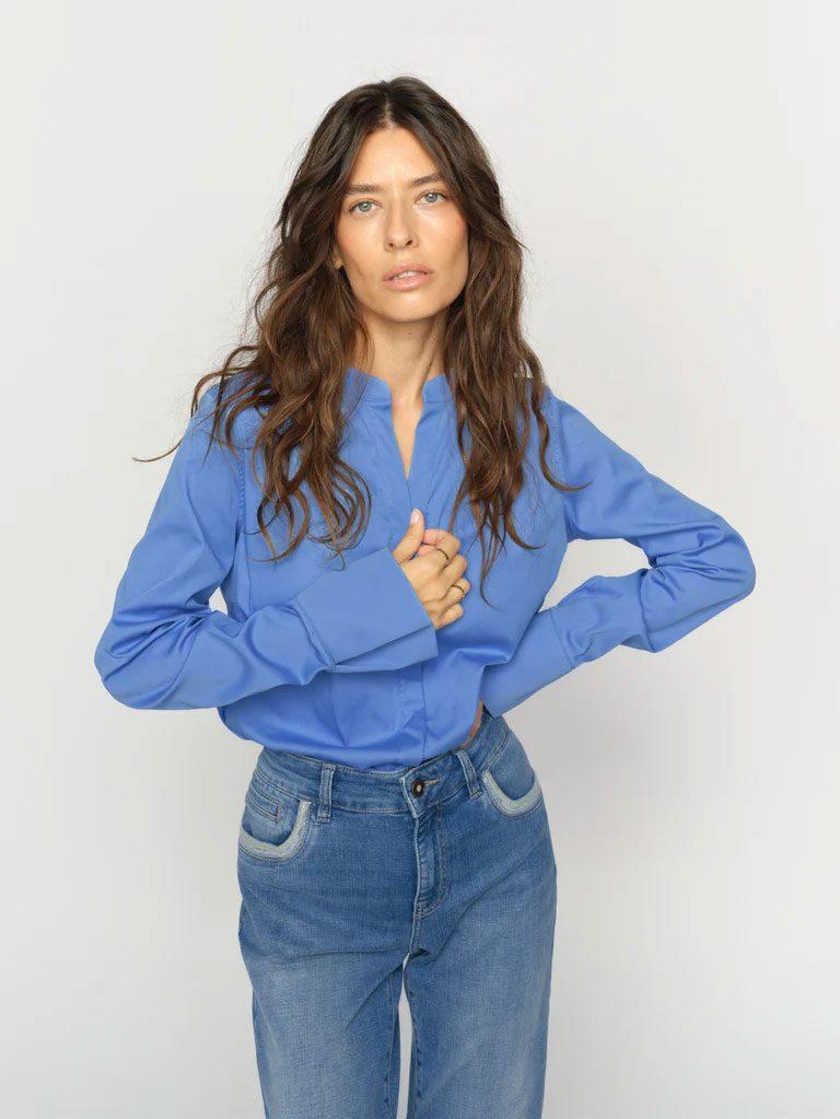 • MOS MOSH ASTRID V-NECK SILK TOP MARITIME BLUE