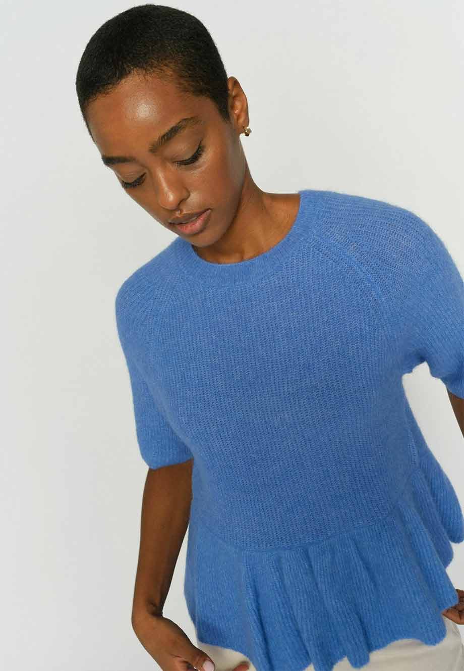 • MOS MOSH O-NECK FRILL SHORT SLEEVE KNIT ULTRAMARINE