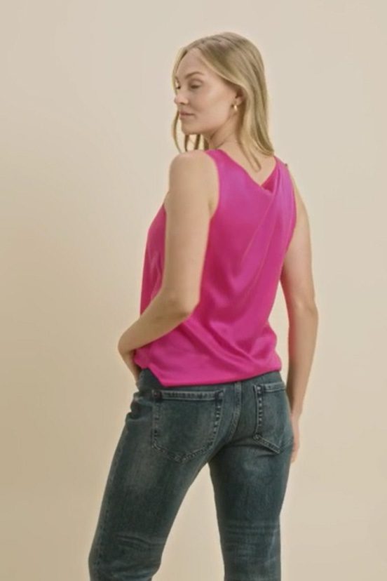 • MOS MOSH ASTRID SILK V-NECK TOP PINK PEACOCK