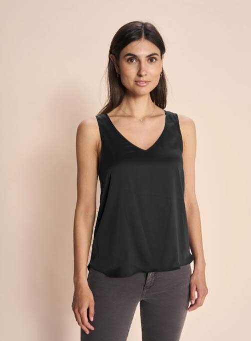 MOS MOSH ASTRID SILK V-NECK TOP BLACK