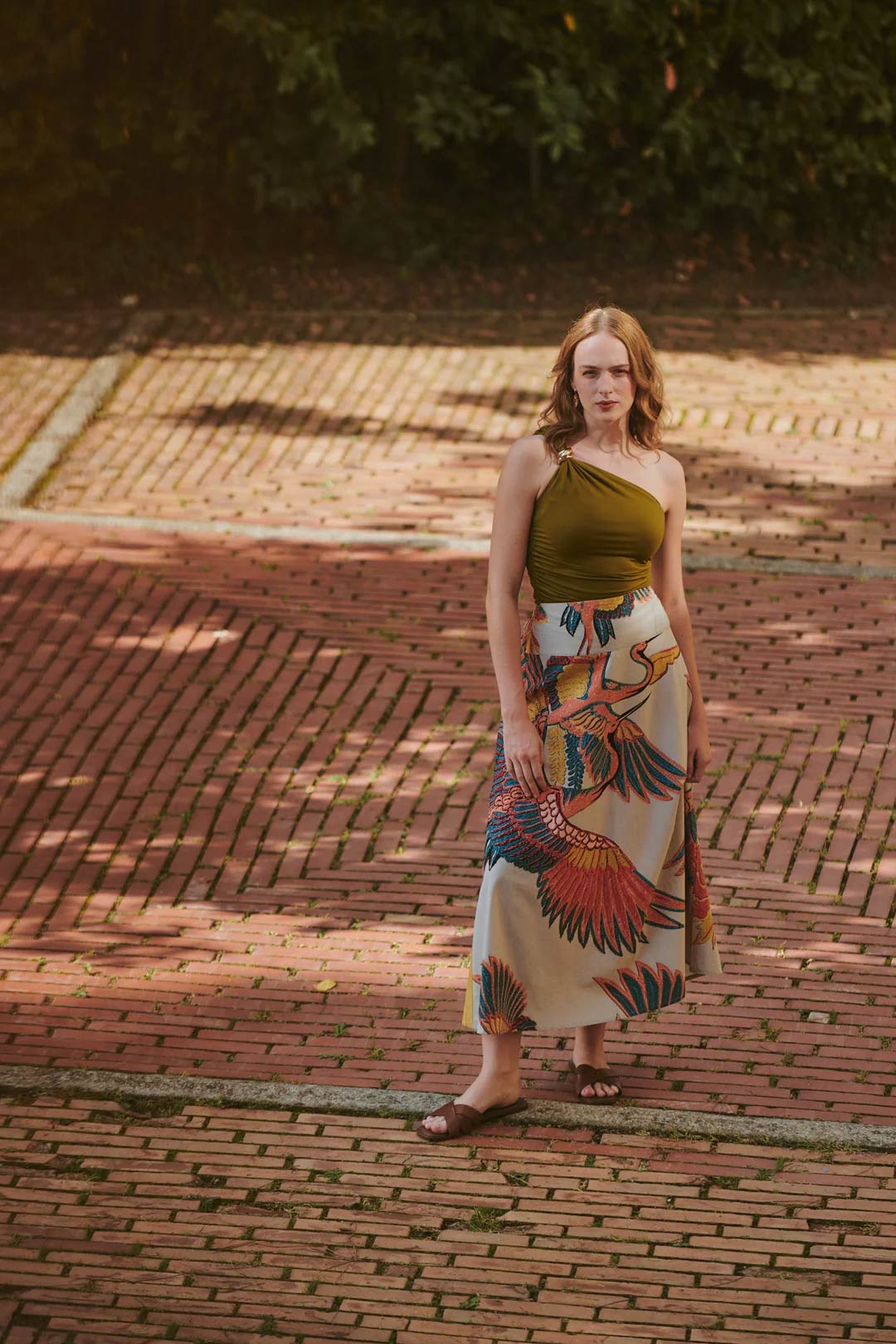 ONE HUNDRED STARS A-LINE MAXI SKIRT GIANT WILLOW GREEN