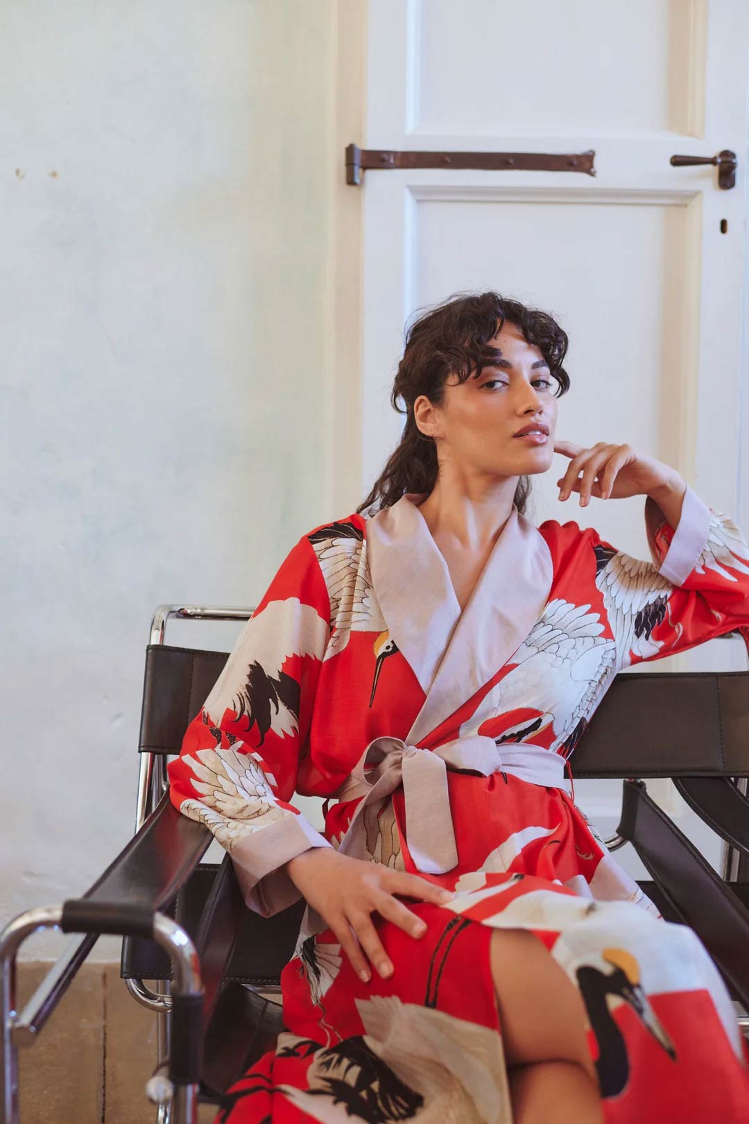 ONE HUNDRED STARS KIMONO STORK SCARLET