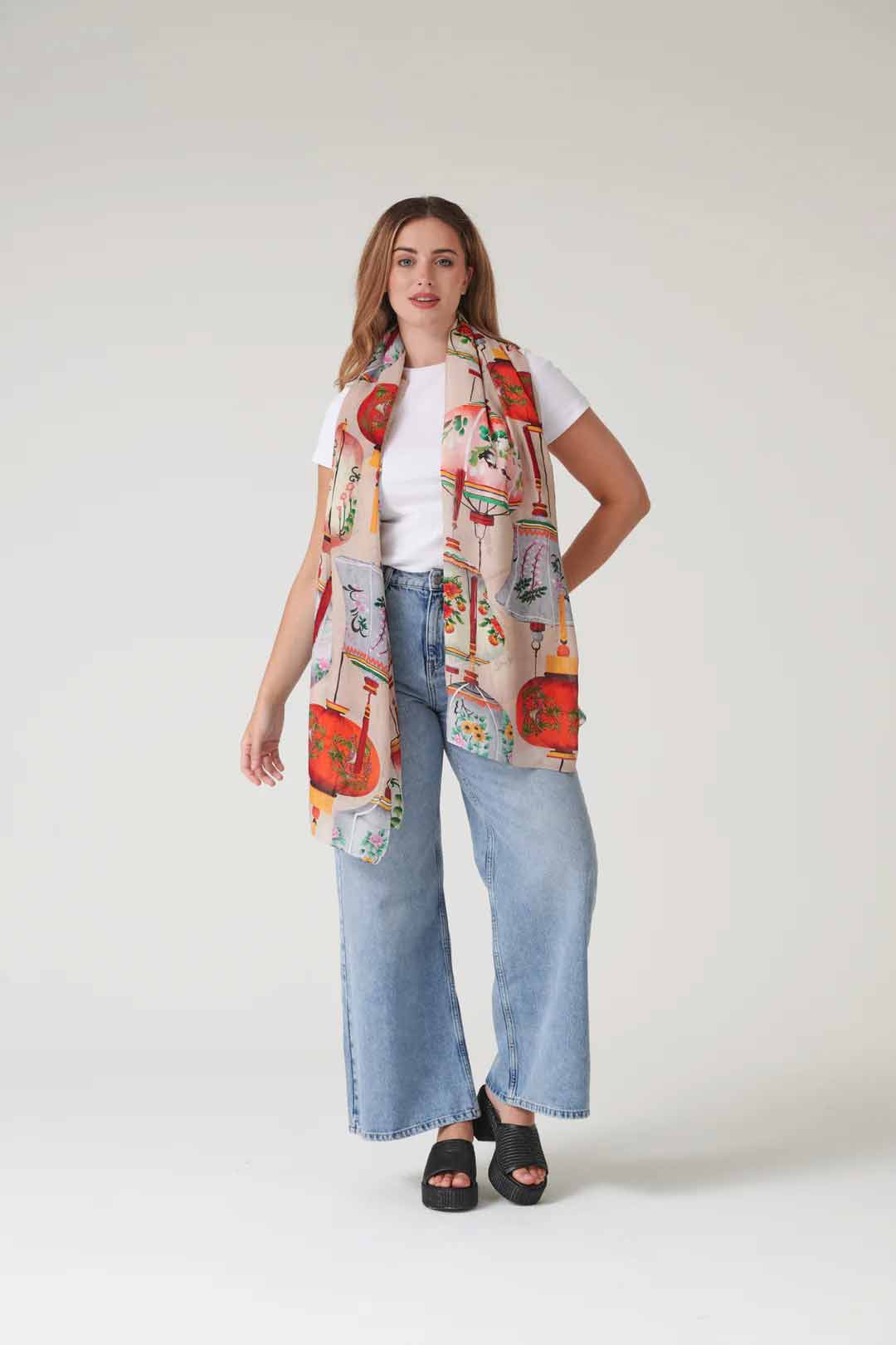 ONE HUNDRED STARS SCARF LANTERNS RED