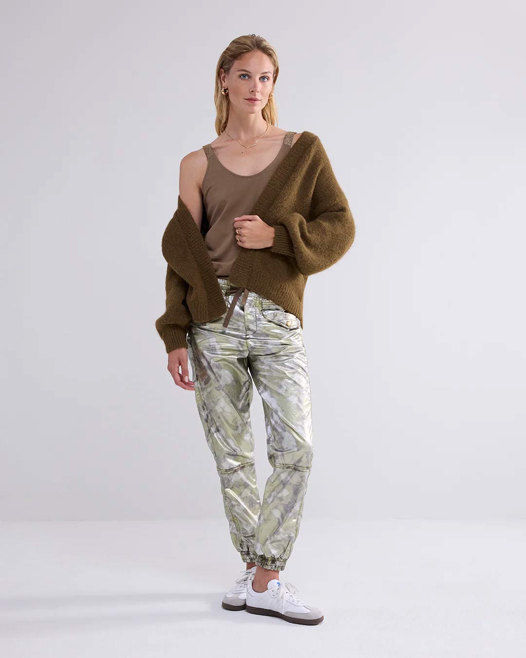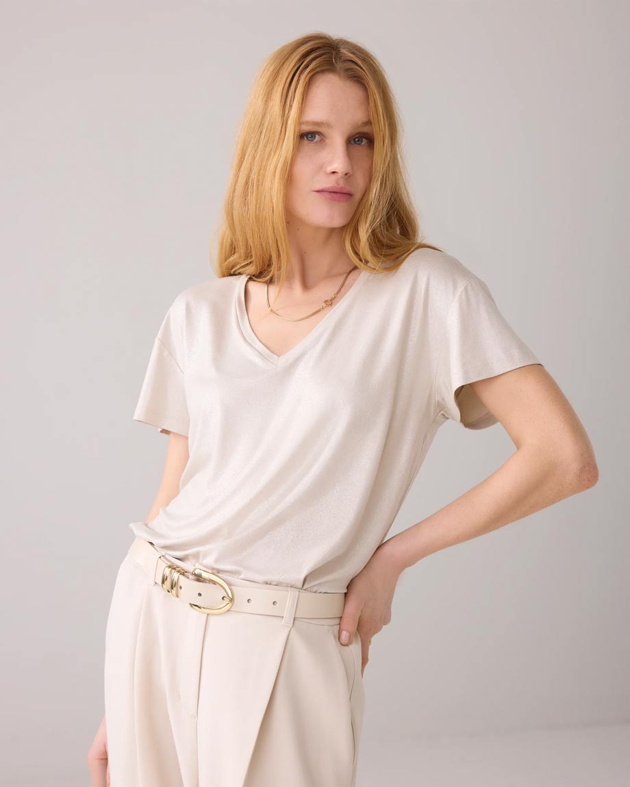 SUMMUM WOMAN SHINY V-NECK TOP KHAKI
