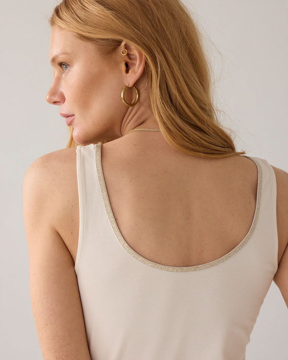 SUMMUM WOMAN REVERSIBLE SINGLET WITH GLITTER TRIM CREAM