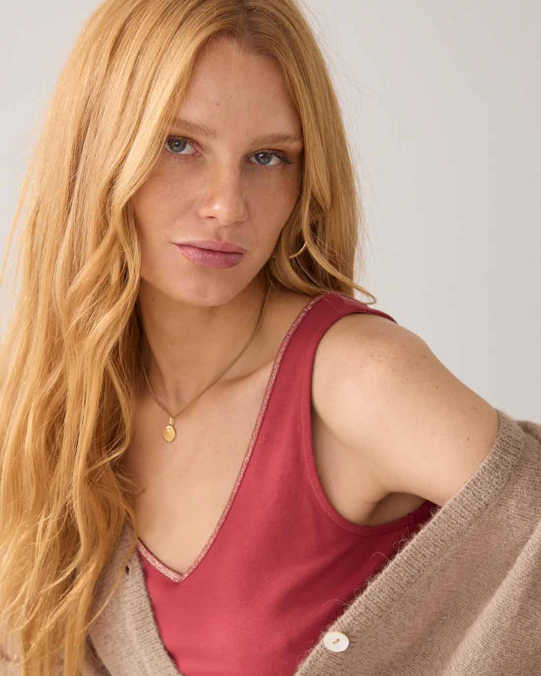 SUMMUM WOMAN RIBBED TOP BRICK RED