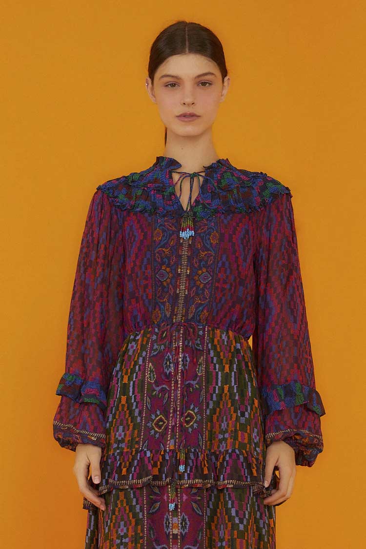 FARM RIO MIXED TAPESTRY MAXI DRESS