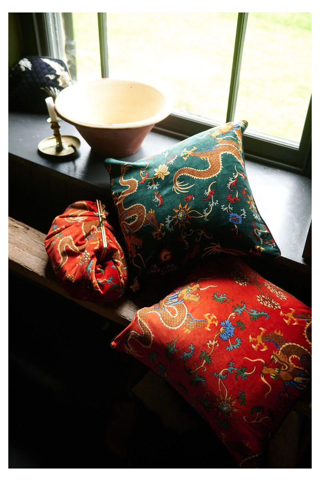 • ONE HUNDRED STARS VELVET CUSHION DRAGON GREEN