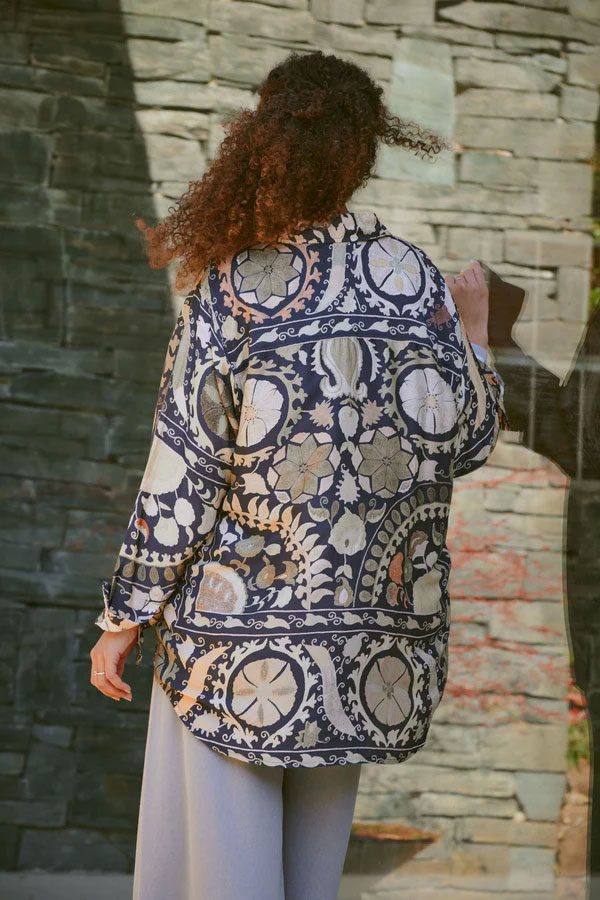 FARM RIO WINTER GARDEN BLACK PAJAMA SHIRT