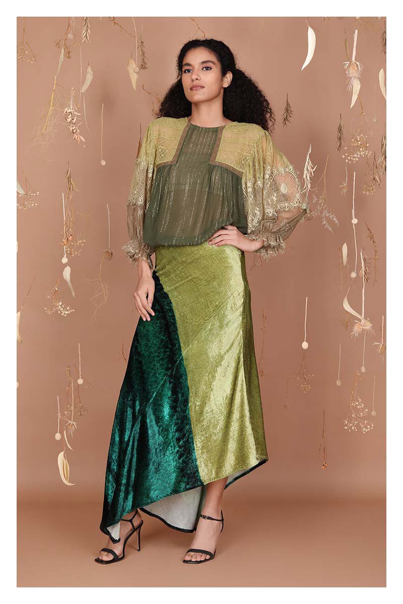 Be the first to review “BL^NK EULALIE SKIRT GREEN VELVET”