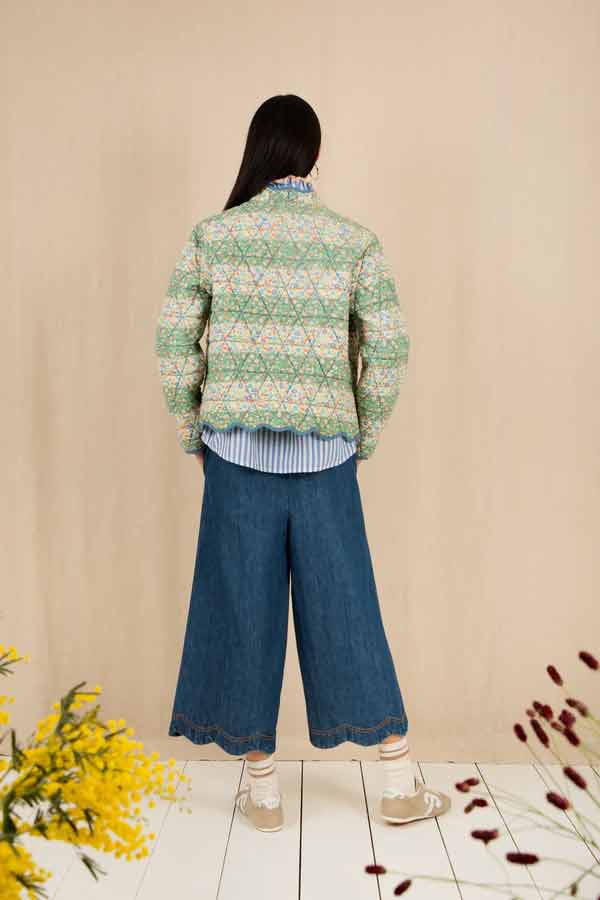 All the edges of the jacket are scalloped and bound with the cotton chambray.