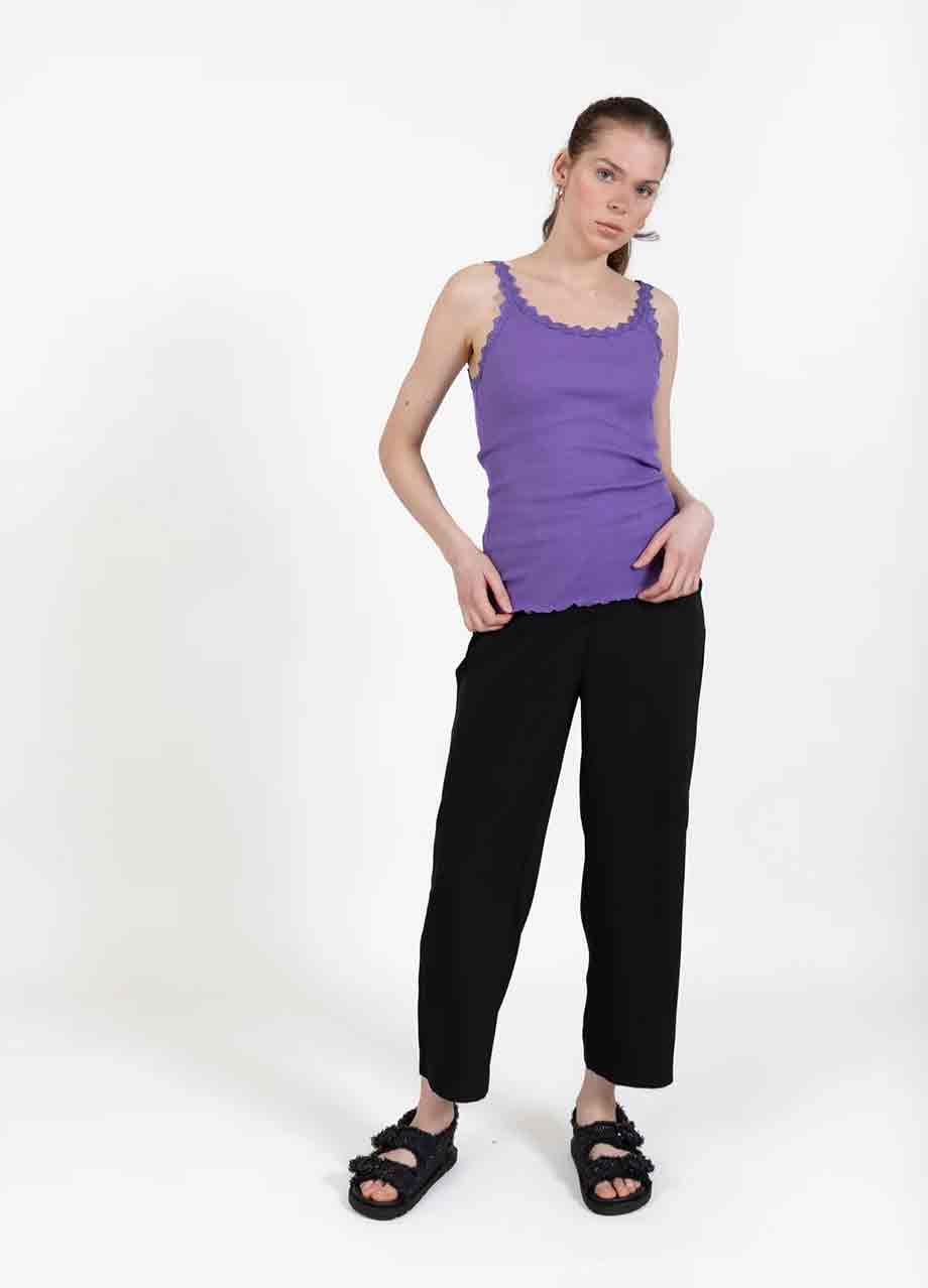 A beautiful top with a comfortable, tight fit and subtle details, such as lace straps. Can be worn under a sweater or a jacket, but also just as a top.
