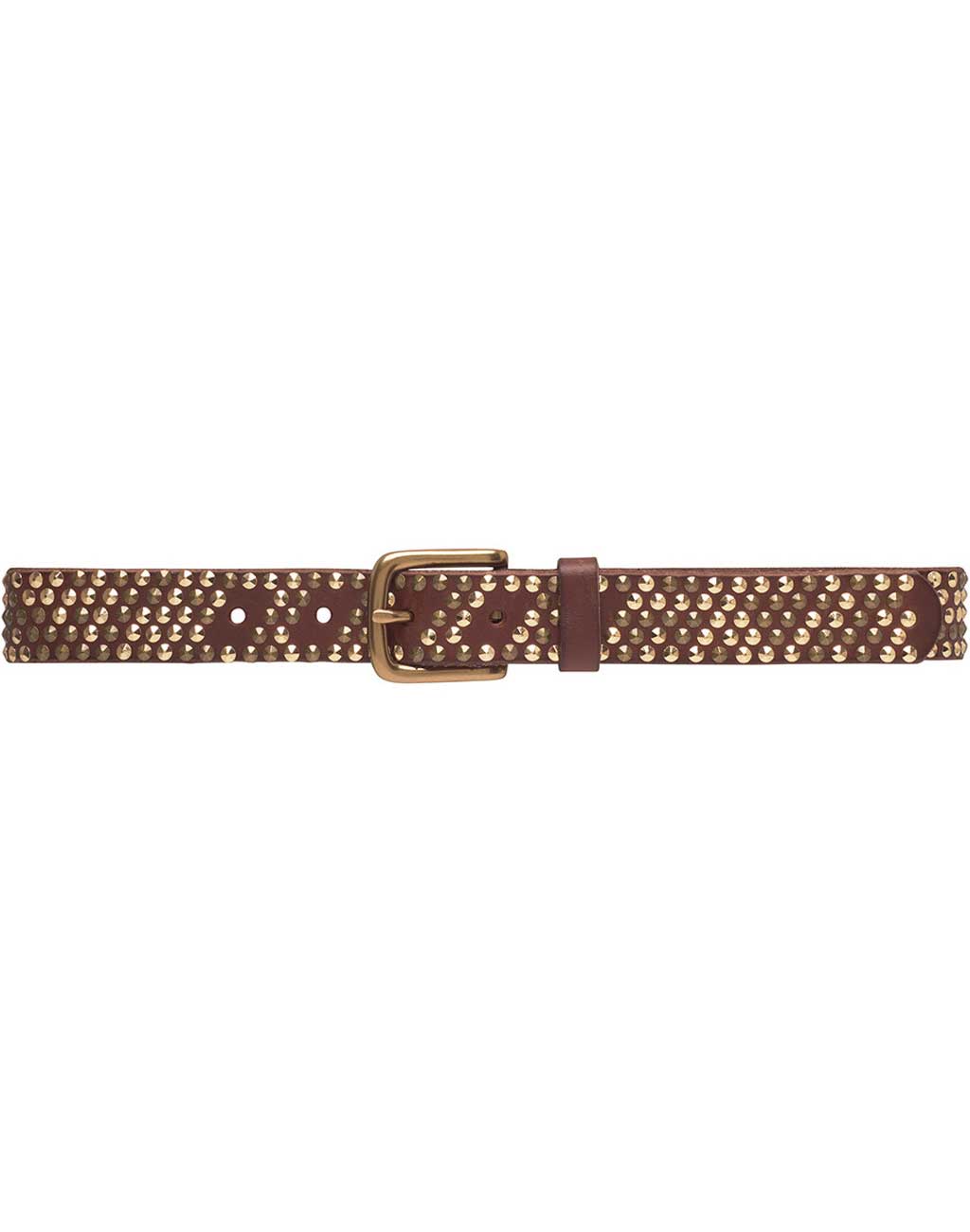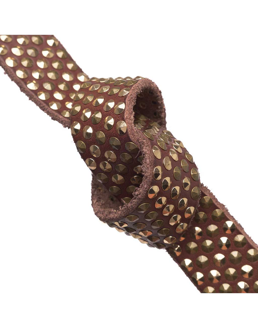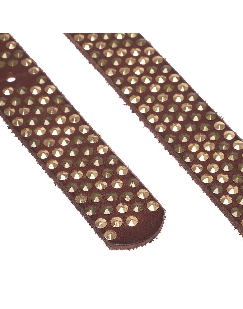 Elevate your style with this 100% leather belt, measuring 3 cm in width. The belt is adorned with numerous small studs all around, creating an exclusive look, complemented by a simple buckle. Ideal for adding an edgy elegance to any wardrobe.