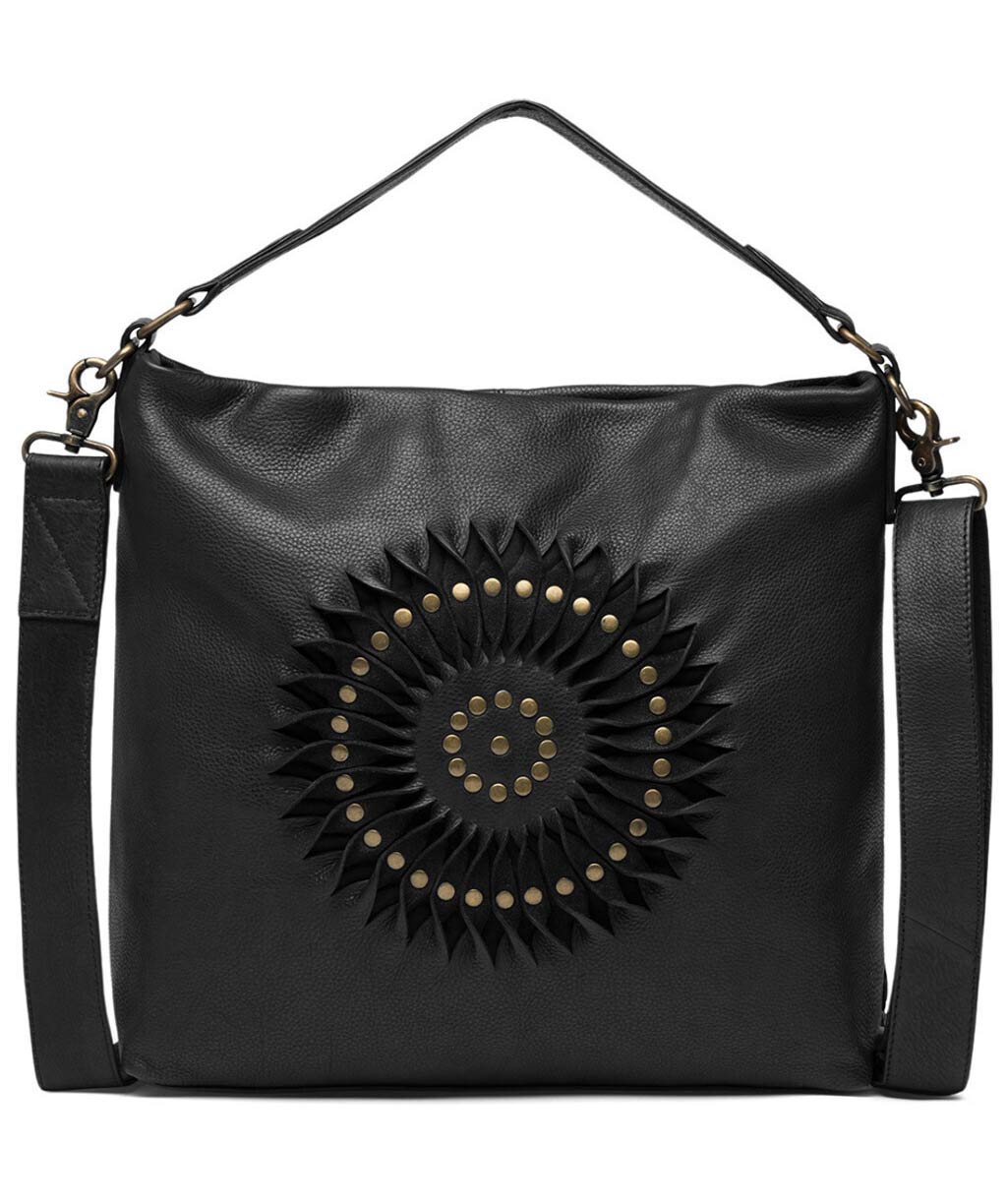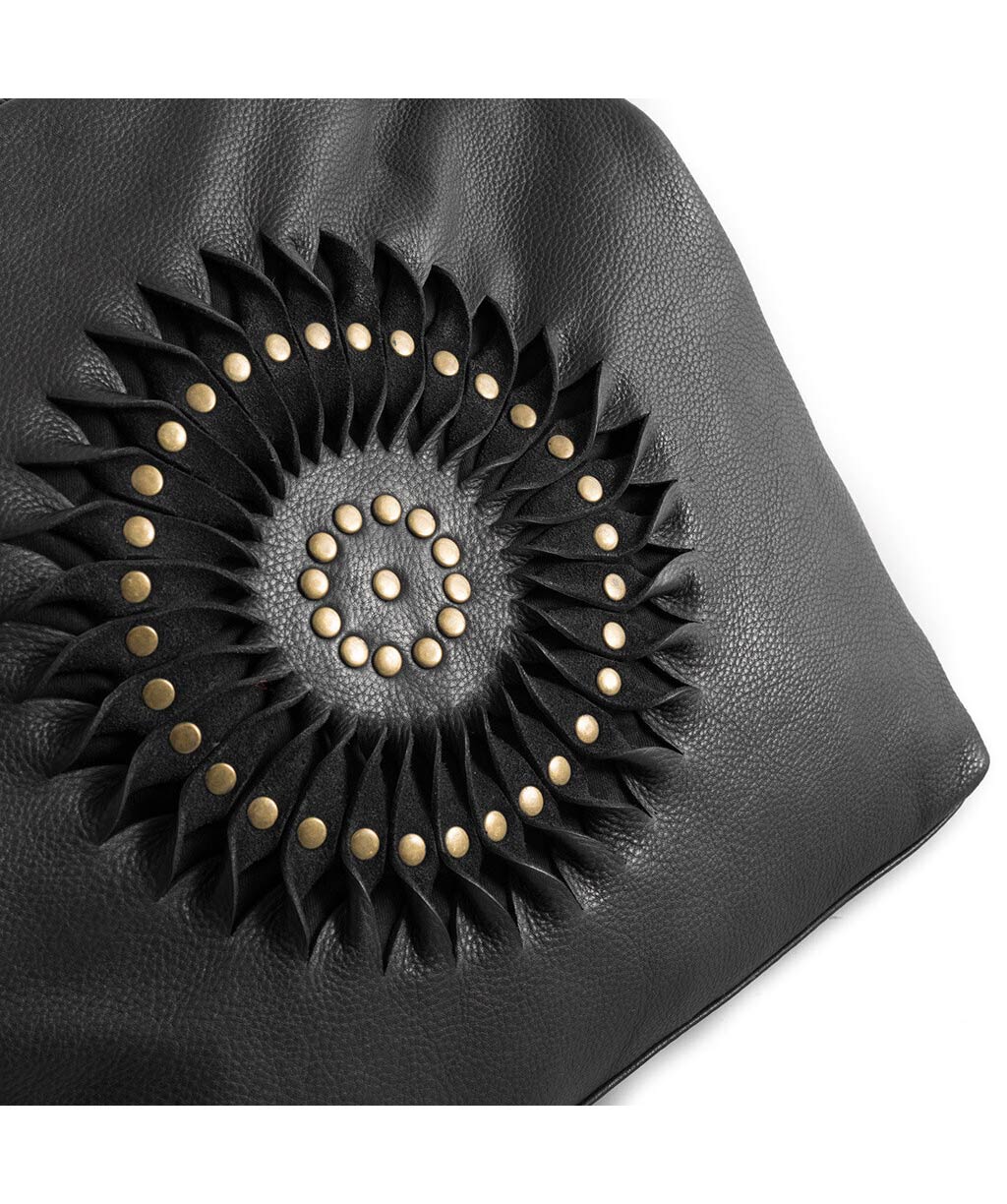 The most beautiful shoulderbag in a nice and soft leather quality. The bag is decorated with the finest handmade bohemian hole pattern and round rivets on the front, which gives a summery and delicious look. It closes at the top with a zipper.