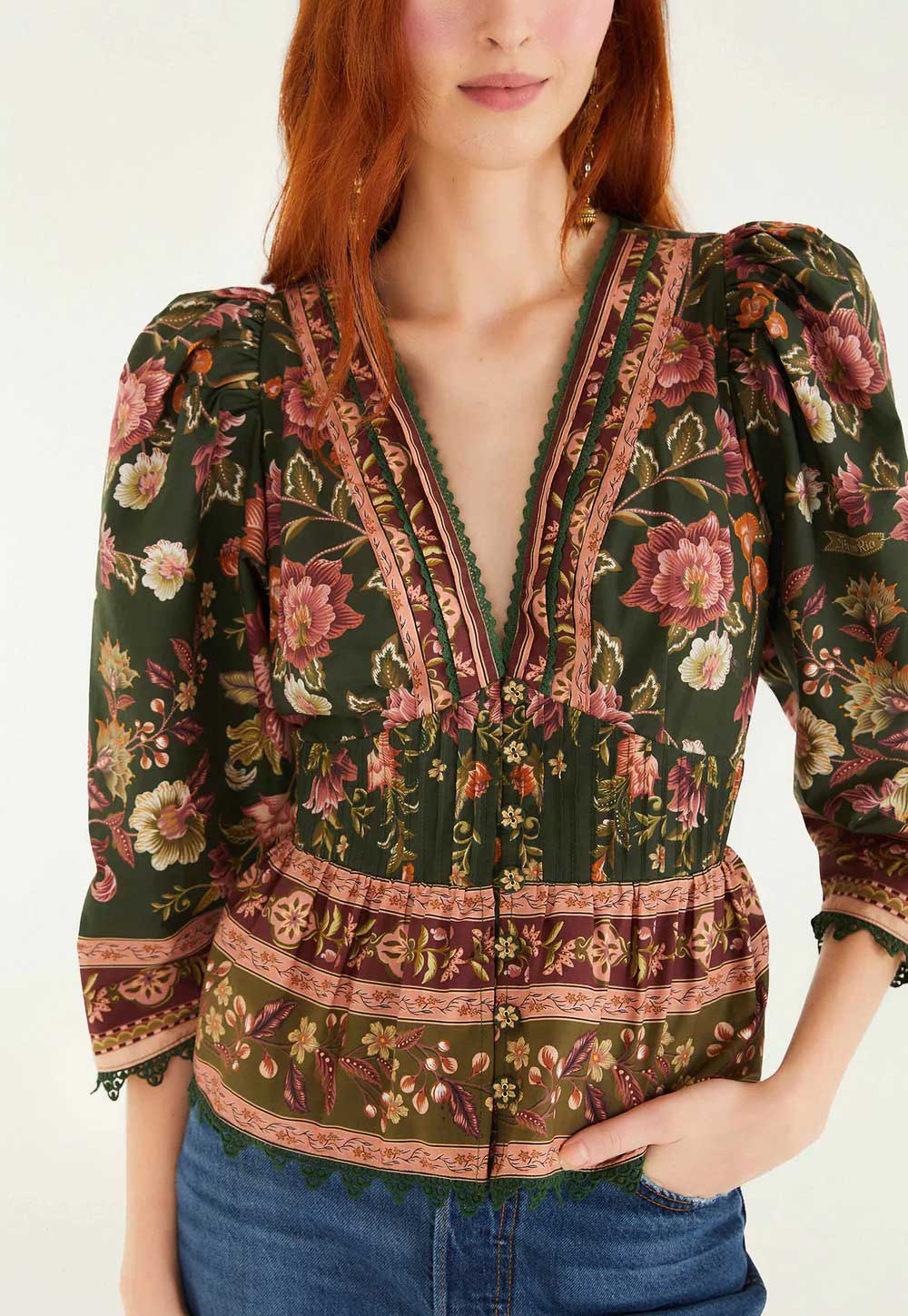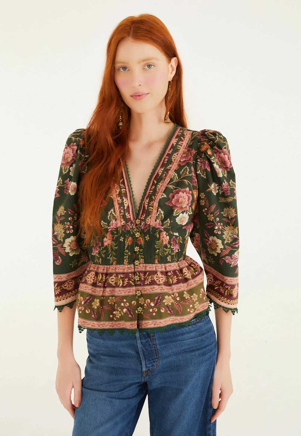 A beautiful garden of blooms lends intricate detail to this peplum top made from a linen blend for comfort and ease no matter the season.