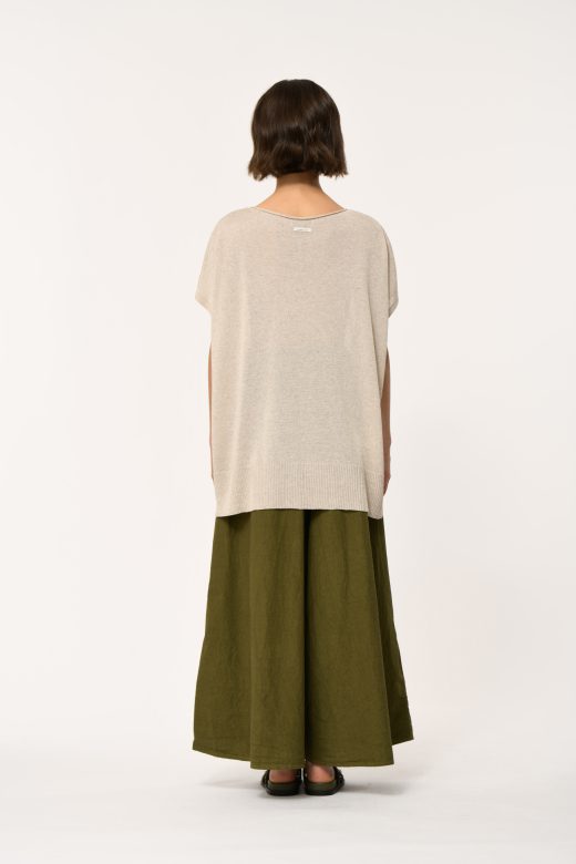 Oversized sweater in fine fluid knit, loose straight cut, boat neckline, integrated short sleeves, ribbed finish at hem.