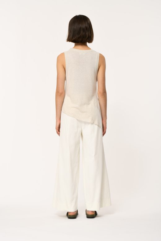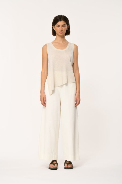Wide pants in cotton drill, high waist, cropped length, elasticated back waistband, Italian pockets, wide inner hem.