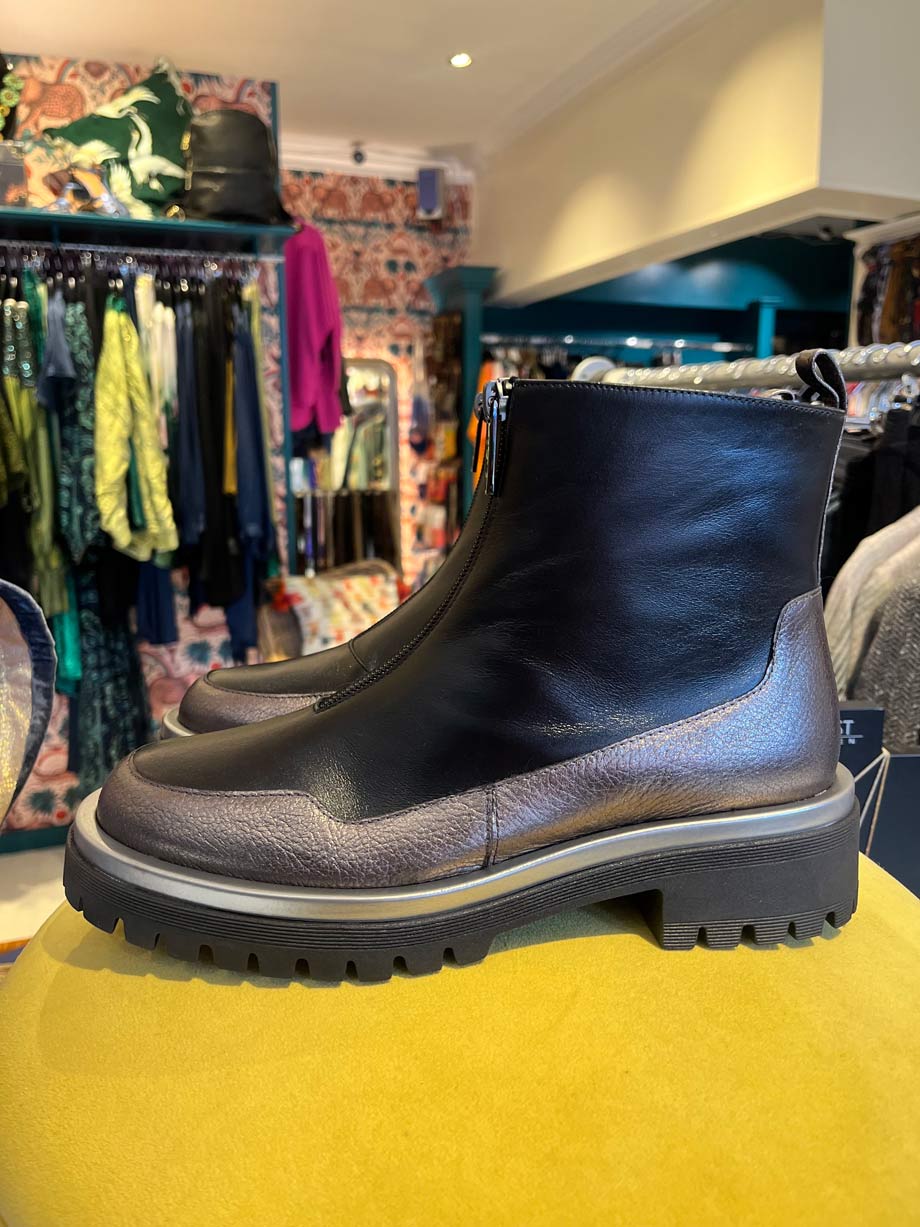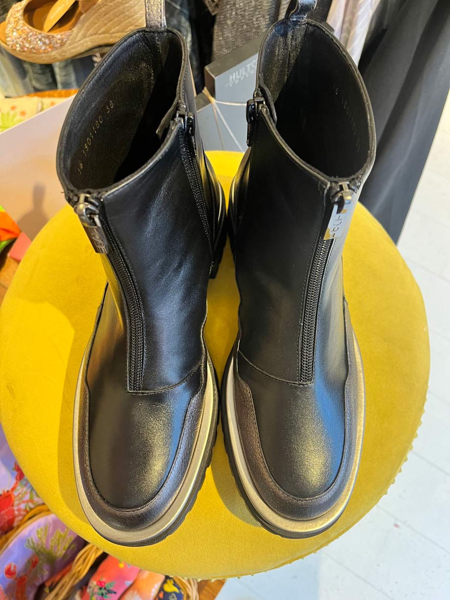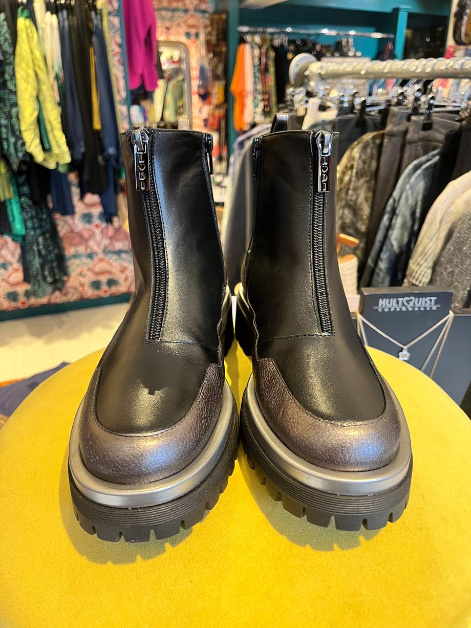 Crafted with a heel of 4.5 cm and a platform of 2.5 cm in height. Central zipper closure. Lined interior in recycled polyester and leather insole. Includes new gel insole for greater comfort in every step. Made in Spain.