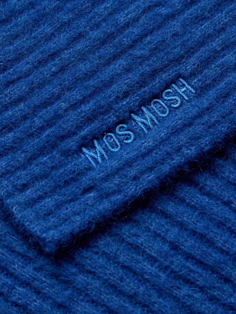 When it gets colder, a knitted scarf becomes an essential accessory. This specific scarf, woven in a two by two rib design from a lightweight blend of alpaca and wool, offers dreamy softness. It’s decorated with a subtle MOS MOSH logo – consider pairing it with our corresponding knitted hat and mittens for a complete look.