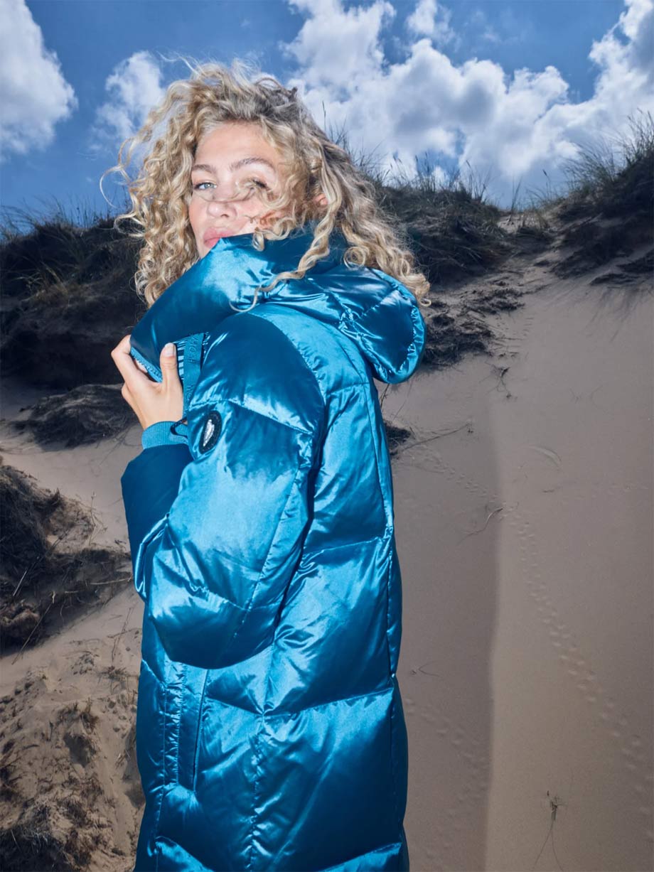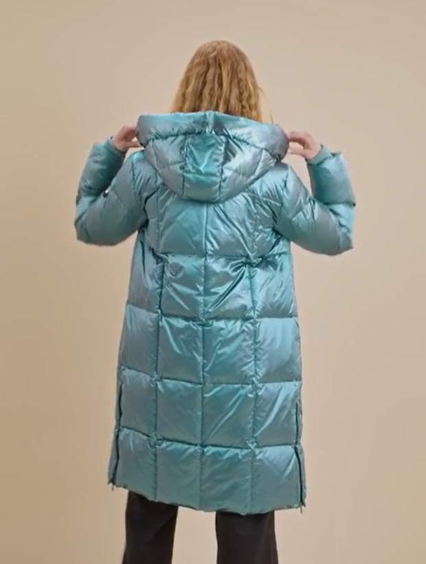 We love this down jacket! It’s designed in a cool metallic fabric and crafted from super lightweight down. Finished with a high practical collar, a heavy zipper, and side slits, making the fit extra flexible.