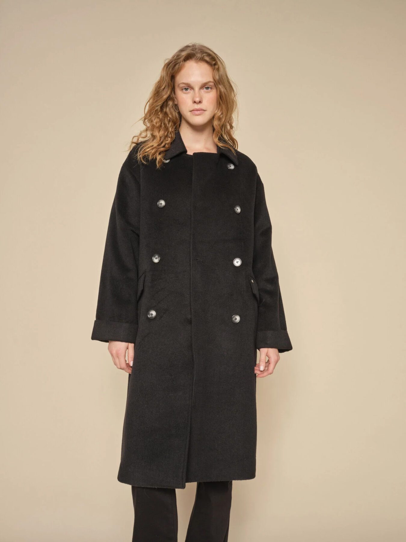 A classic wool coat is a must in the autumn wardrobe when the temperature drops, and this wool coat is no exception. It has a button closure, a subtle turn-up at the cuffs, tone-in-tone inside lining, and pockets. It’s comfortable to wear and works with just about anything.