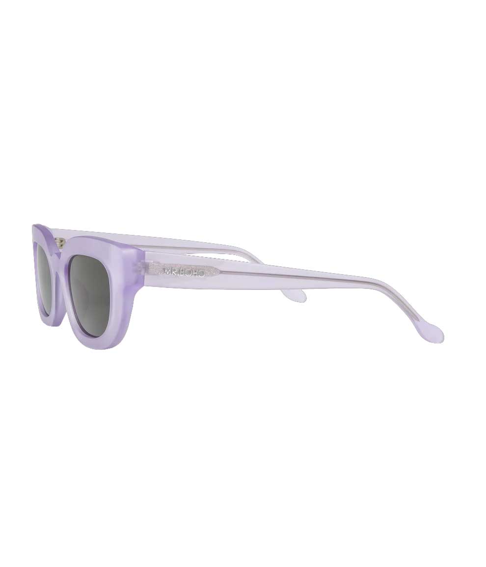 A new cat-eye frame with softened lines and horizontal character. It stands out for its original rounded bridge, which creates a flattering silhouette with a distinctive touch.