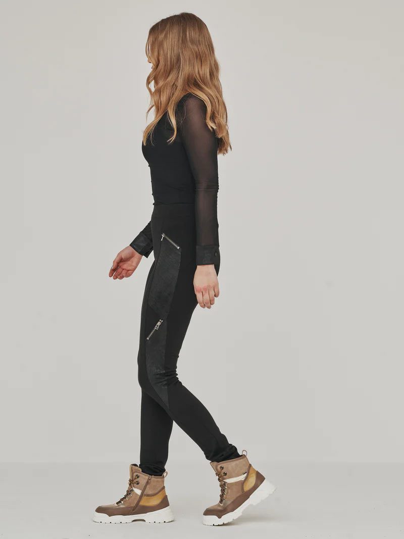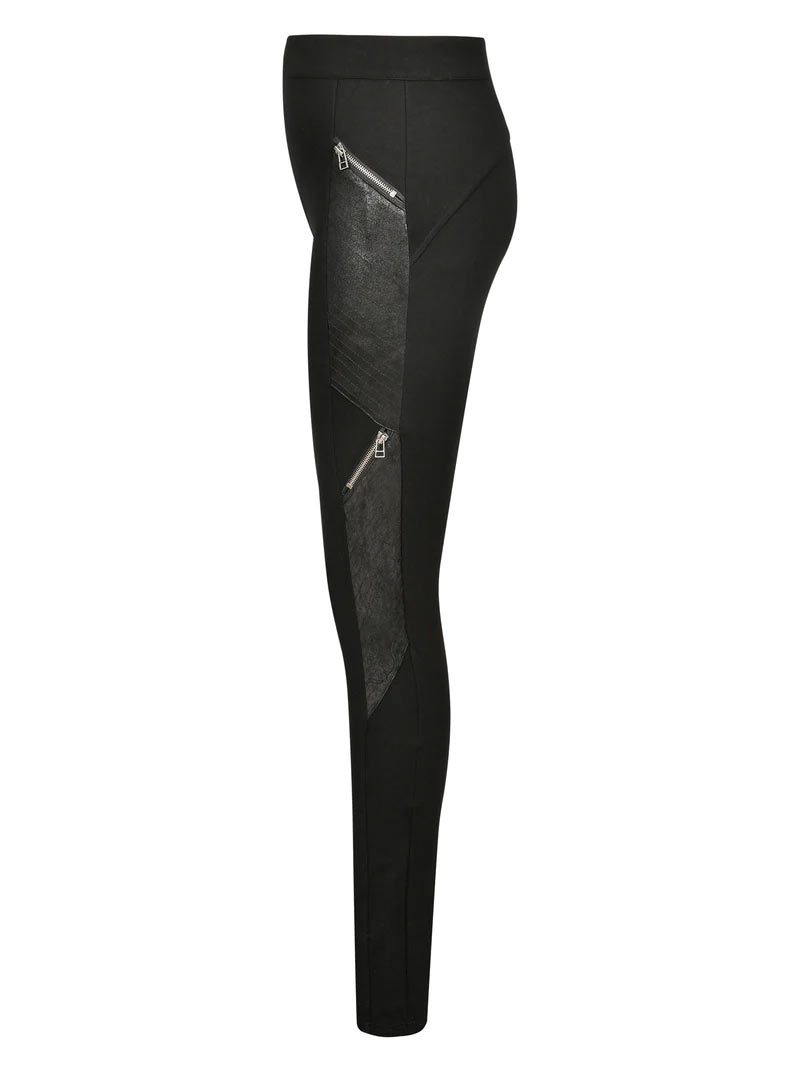 Made in a soft and comfortable fabric with an elasticated waist that provides great comfort. The leggings are designed with details of coated suede and decorative zips on the side of the legs, giving them a raw look. Style your leggings with everything from a mesh blouse to a knit blouse for a cool and comfortable outfit.