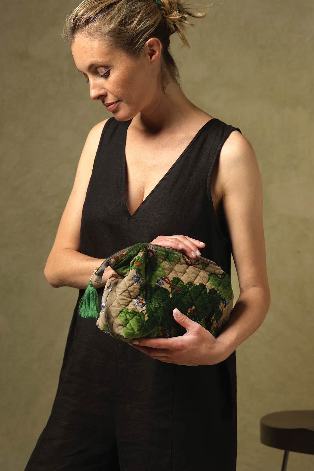 This 100% organic cotton velvet pouch is perfect for throwing in your handbag, taking on a trip away, and even for elevating your look as a clutch bag. With a large main compartment and two pockets in the lining, this velvet pouch has enough room to store all the products you’d need for any event.