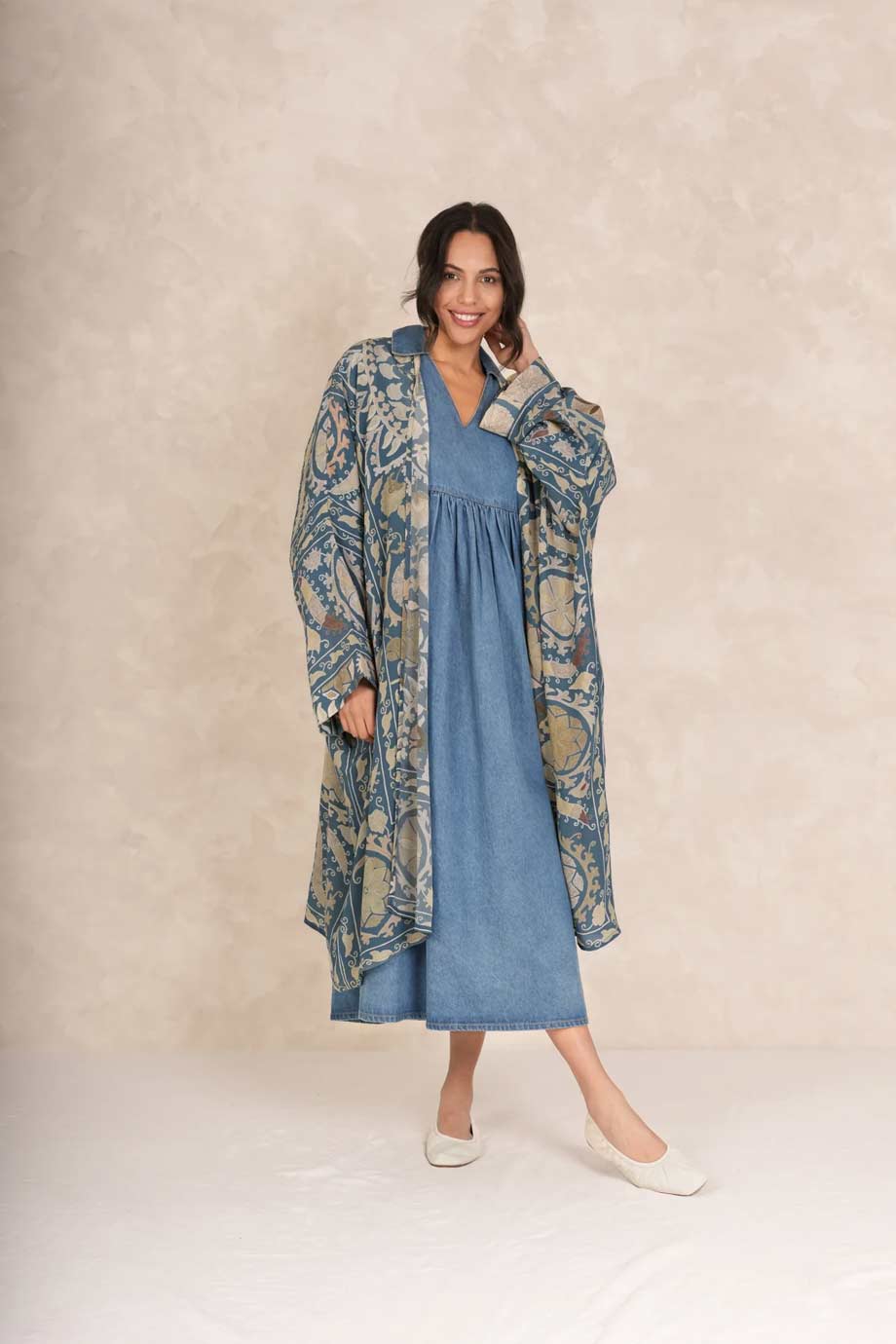 Our full-length Grande Kimono shows the full beauty of our bold signature designs. Featuring traditional loose sleeves and hidden side pockets, this loose fit kimono is great worn open with jeans and a camisole, or over a simple dress.