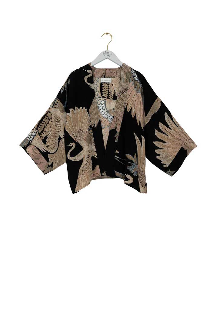 ONE HUNDRED STARS CREPE KIMONO CRANE BLACK