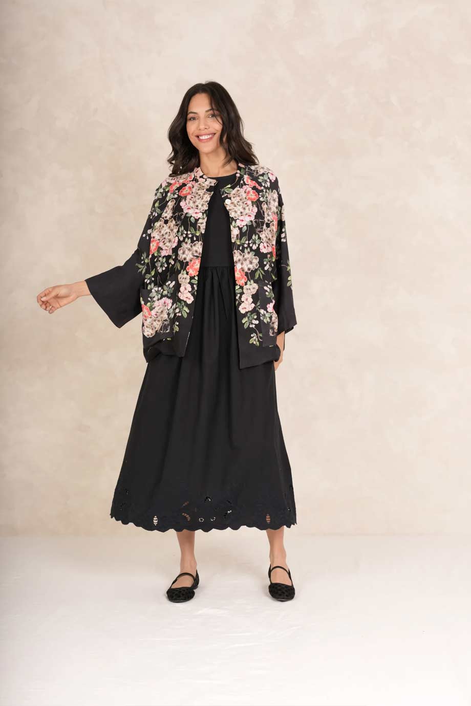 Be the first to review “ONE HUNDRED STARS LINEN JACKET TRAILING BLOSSOMS BLACK”