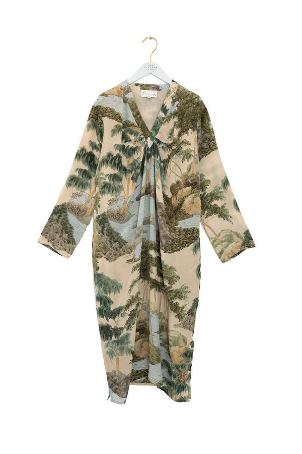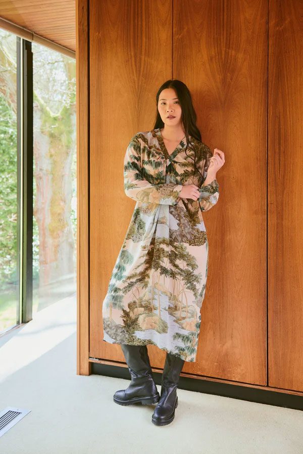 This dress reveals the full print in its soft, flowing shape.