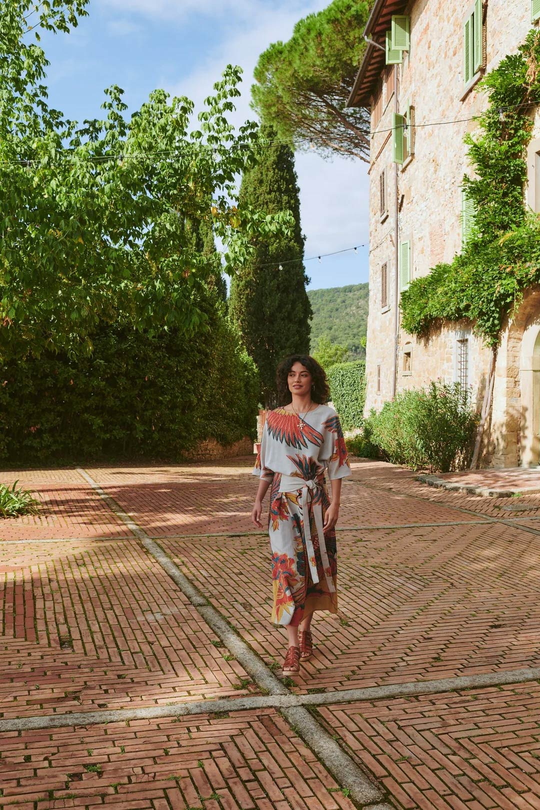 The Crane, a symbol of happiness. This bold pattern with an exciting mix of colour is delightful. This clever colour palette of green, blue, and pink on the crane set off against the stone background will make the wearer smile.