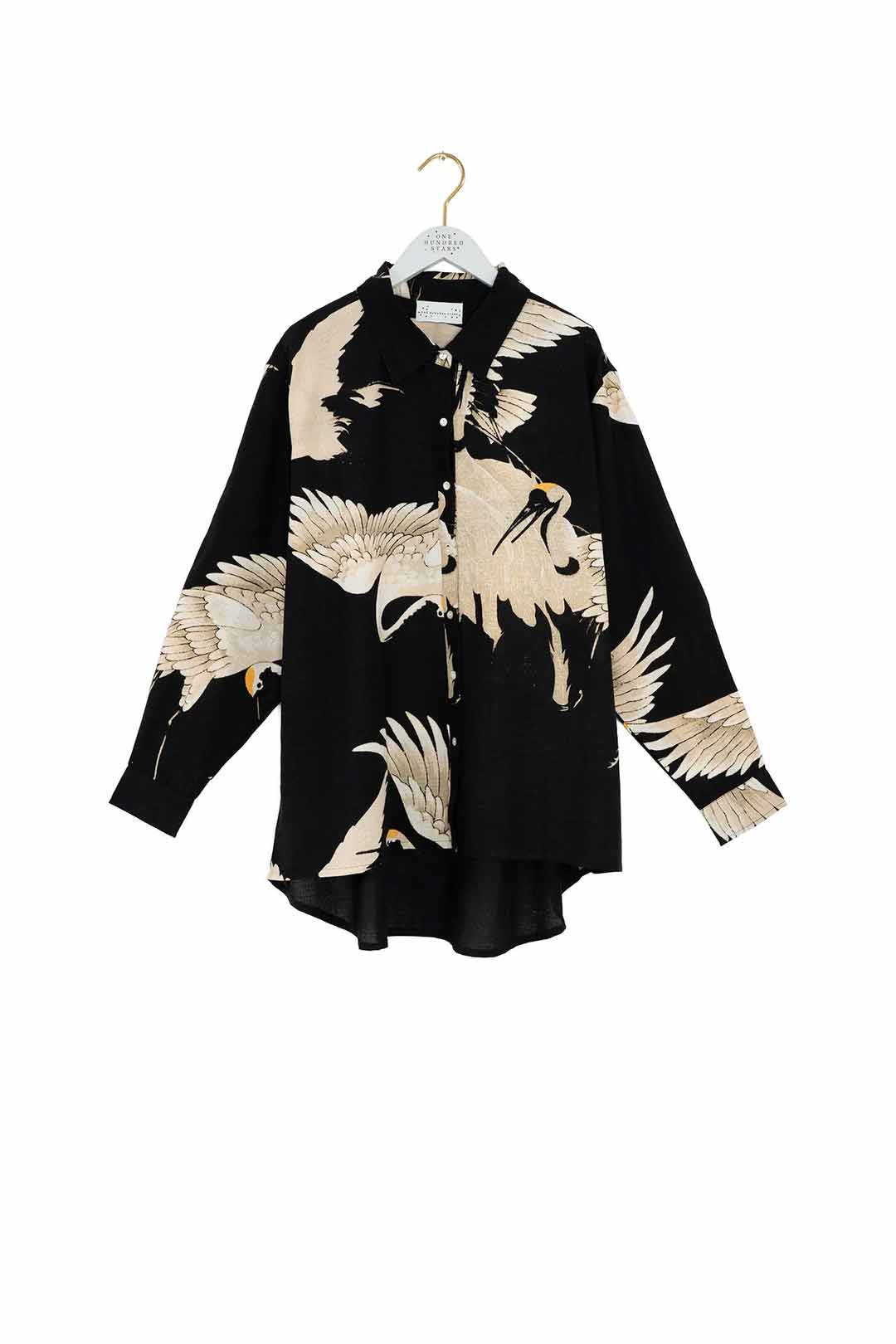 A work or weekend oversized shirt. Featuring dropped shoulders, dipped hemline and finished with delicate mother of pearl buttons.