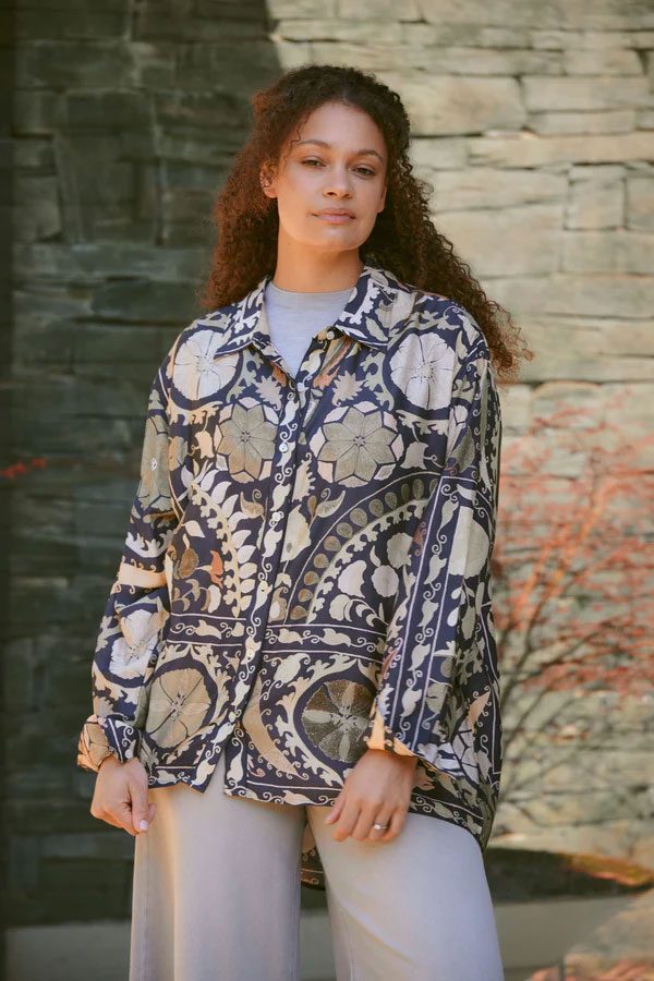 This longline shirt provides a fluid shape and effortless look that is perfect for all seasons.