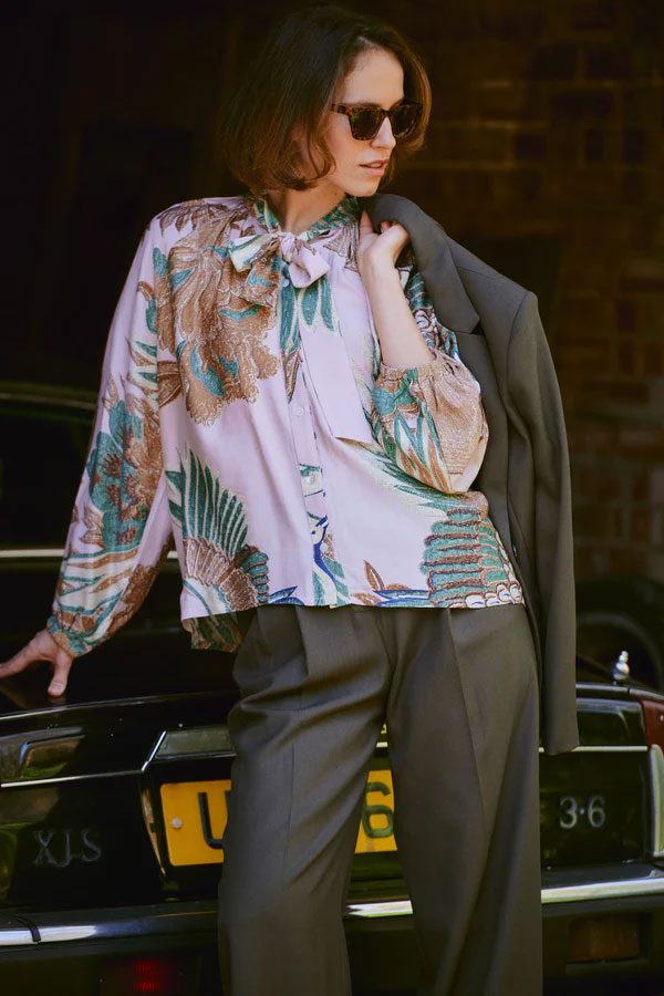 This classic shape blouse shows our prints beautifully. The Pussy-bow can be teamed with our A line skirt for a more formal look or worn or simply as a casual blouse.