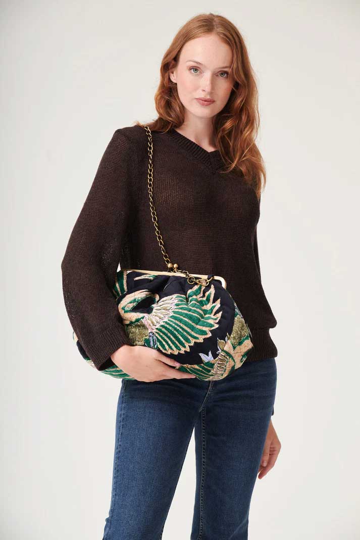 This vintage-inspired, oversized clutch bag is the statement accessory of the season.