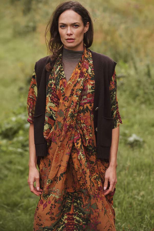 This cowl neck, V-line dress features a pin tuck front, and pockets and can be styled loose or worn with a belt to create a beautiful silhouette.