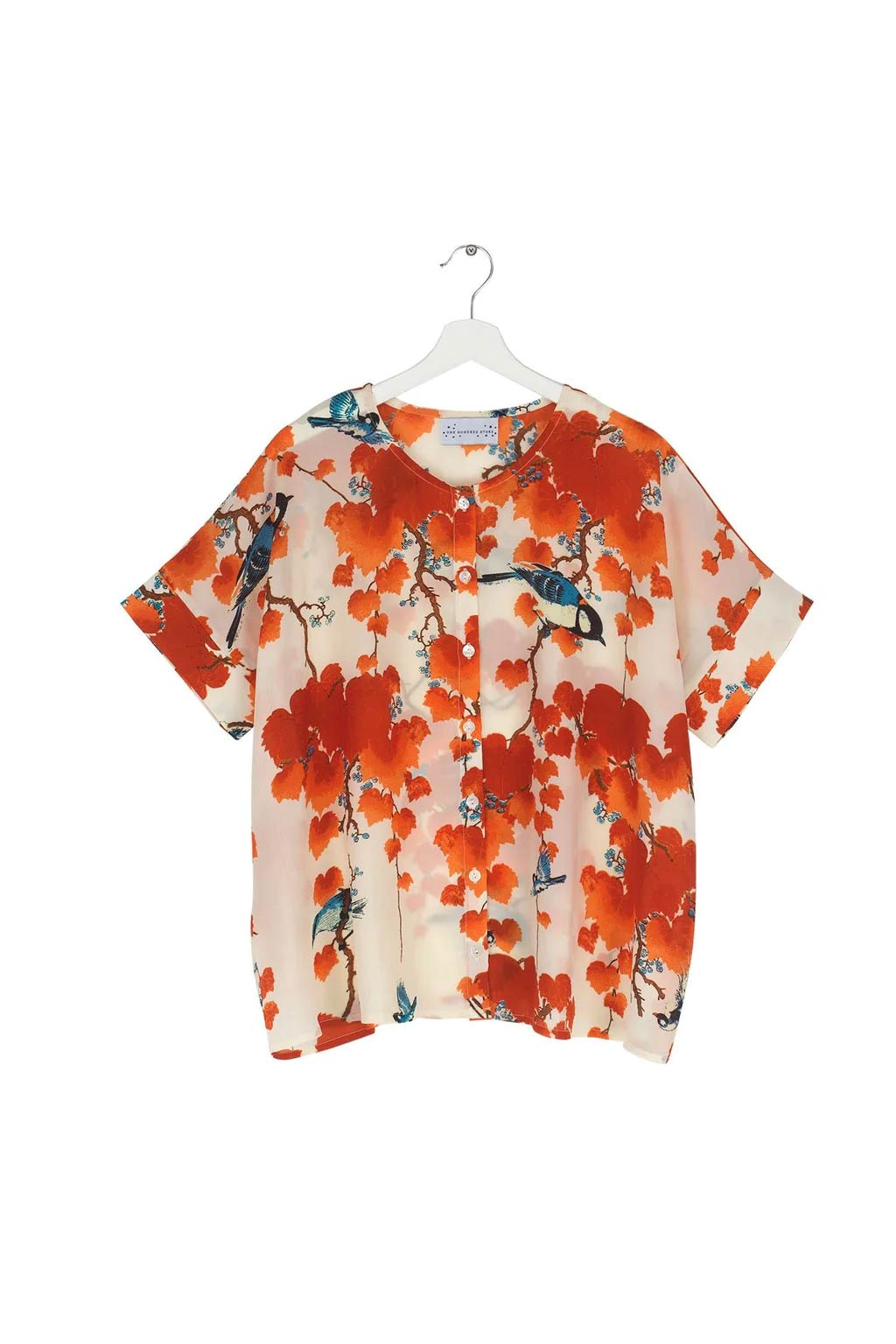 The Acer Red design features the beautiful ornamental foliage of the Japanese maple tree with bold scarlet and orange tones on a rich ivory base.