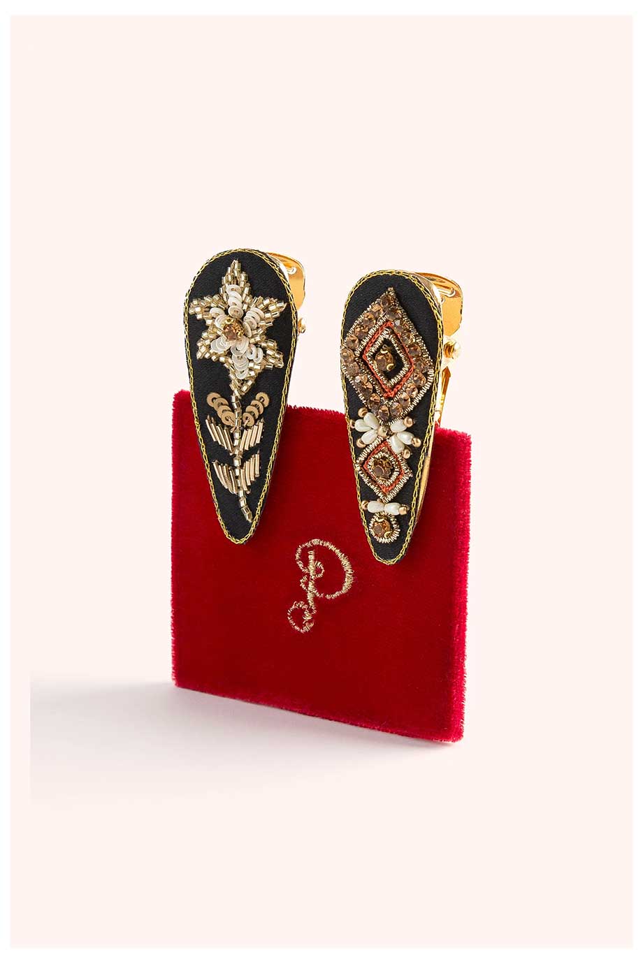 The dainty teardrop shape of these hair clips is the perfect feminine addition to your look. Two contrasting designs ship on the cute velvet card, making the perfect gift at the perfect price this season.
