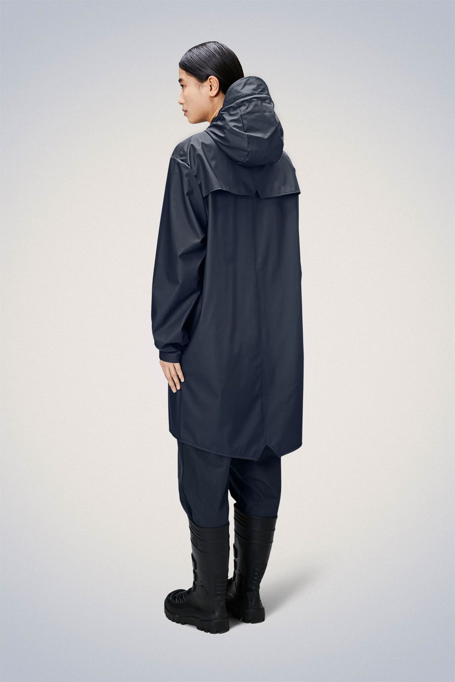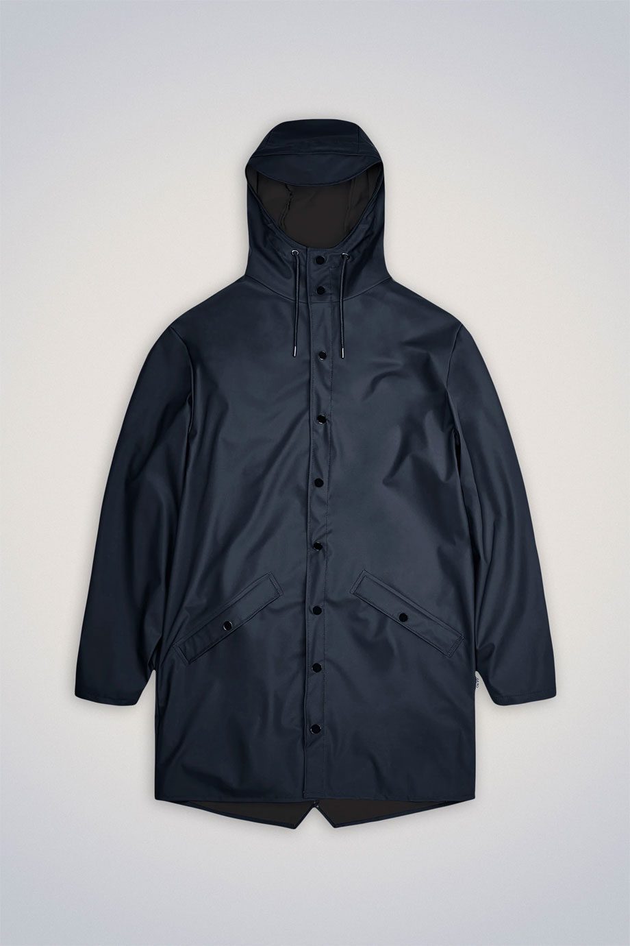 Long Jacket is a longer version of Rains’ classic design, Jacket. This ever-contemporary unisex rain jacket delivers high functionality in a minimal silhouette. Features include double welded slanting flap pockets, adjustable cuffs and a fishtail hem. The look is finished with snap fastenings, under-arm eyelets, and a back yoke with concealed vents.