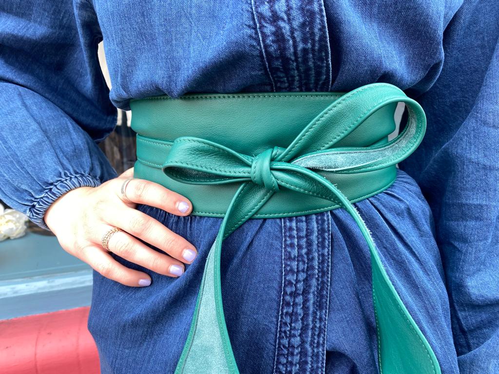 Soft leather Rococo turquoise obi belt. Perfect for game-changing outfits.