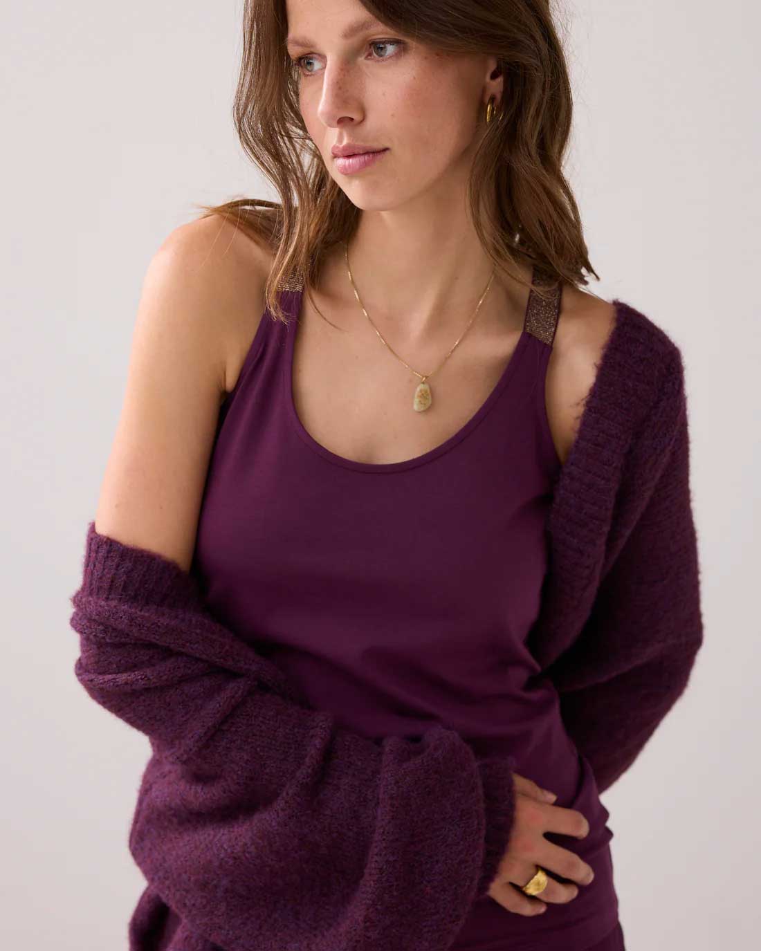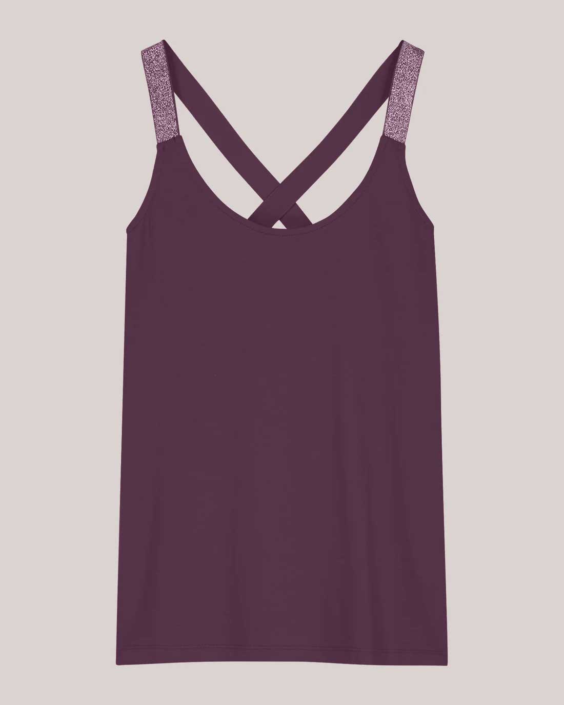 Basic singlet with a cross band at the back, made of cotton elastane jersey fabric. This slim-fit top has eye-catching glittery straps.