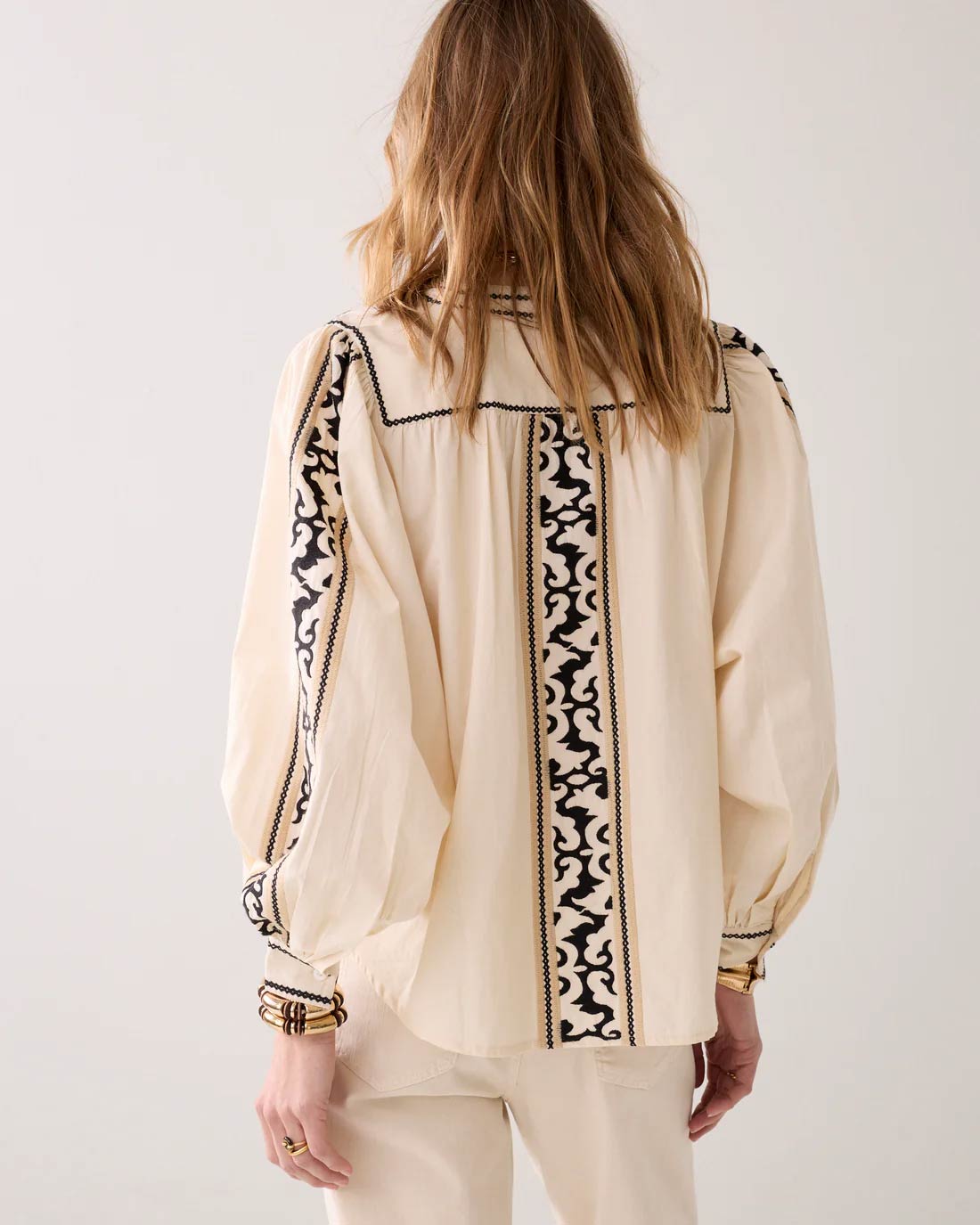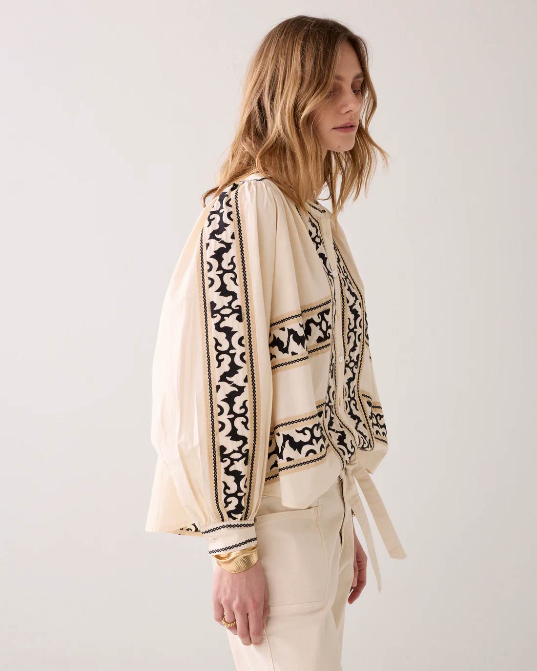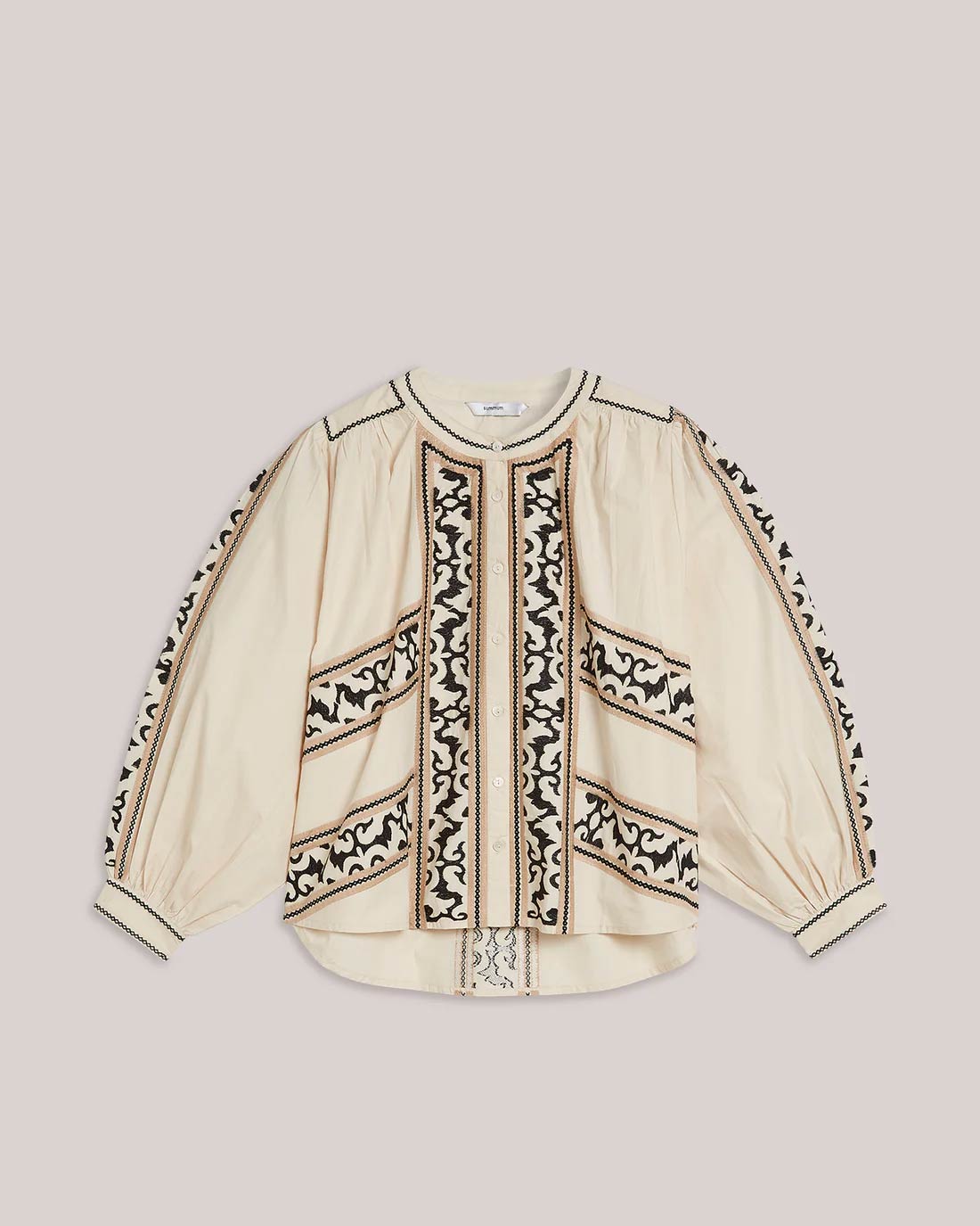 Blouse in crispy cotton with a loose-fitting, boxy fit and a slightly longer back. The blouse features all-over embroidery.